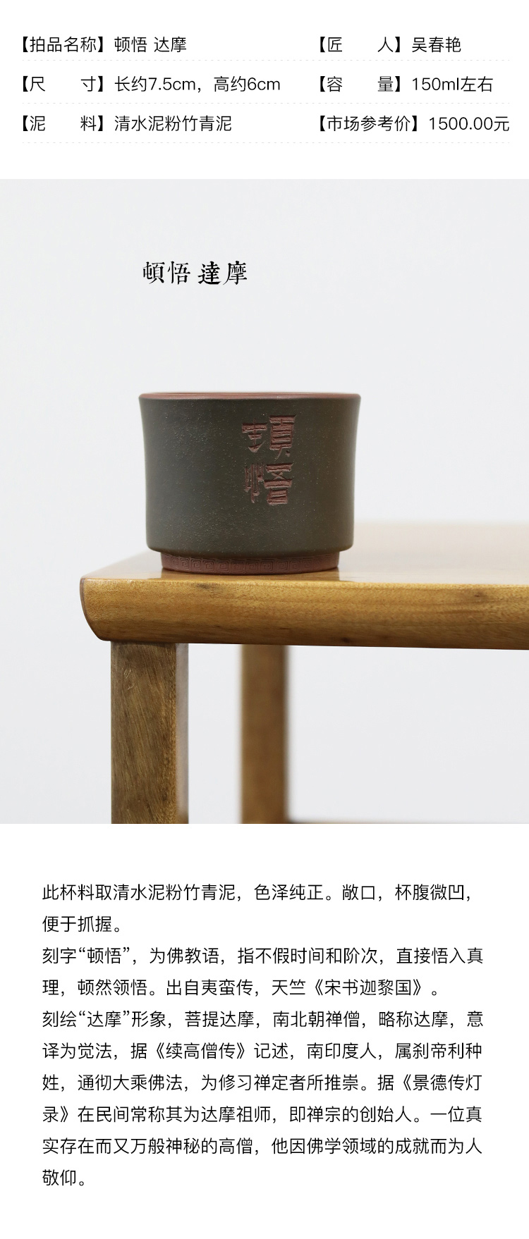 【紫砂】顿悟达摩紫砂主人杯