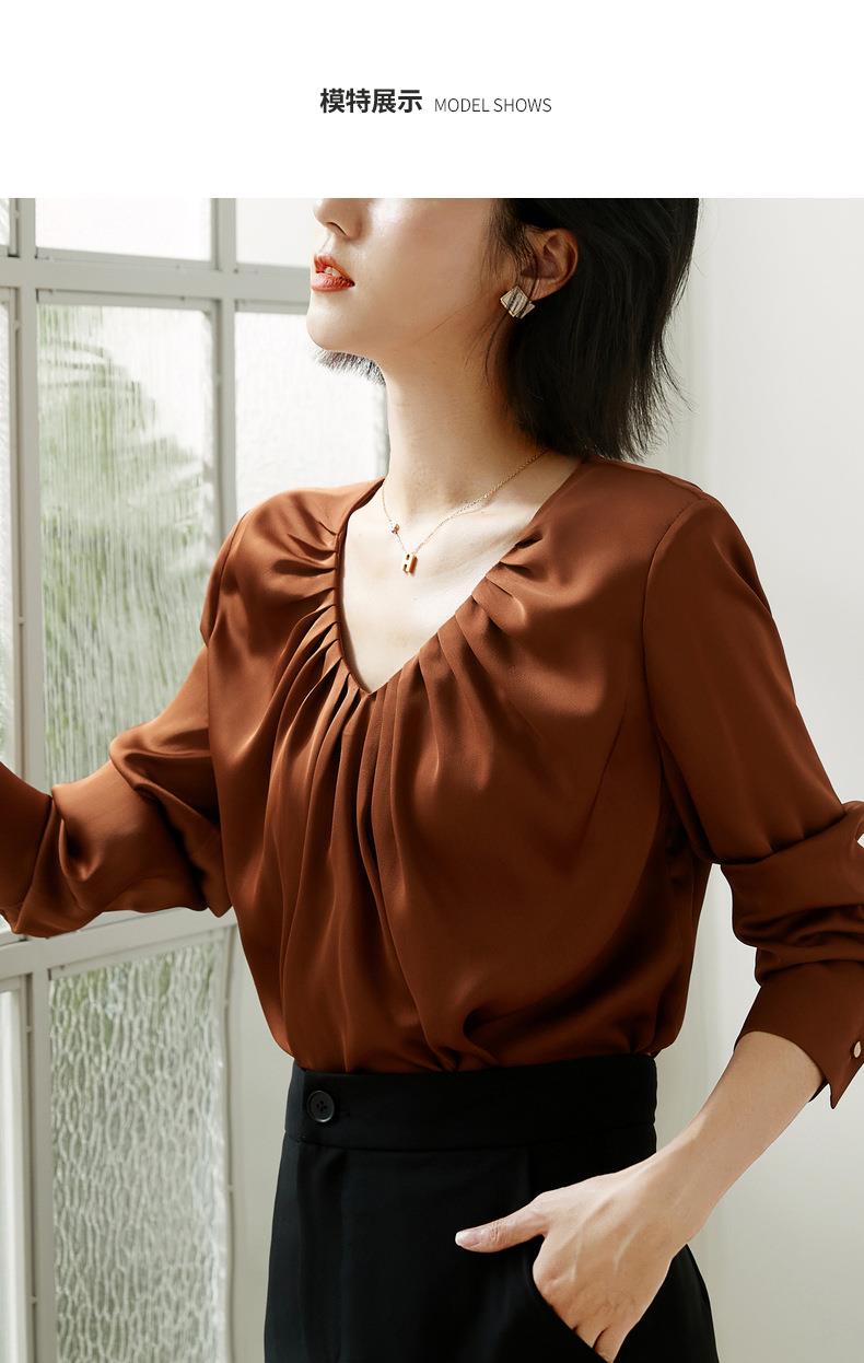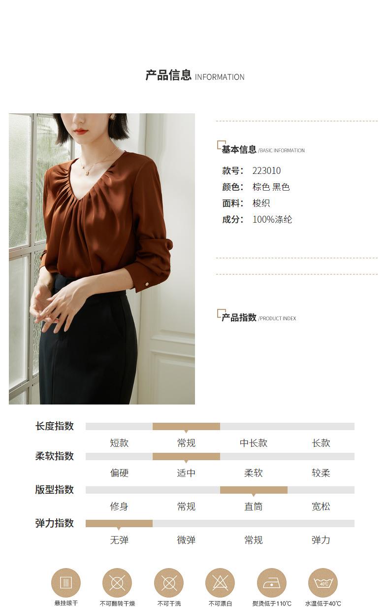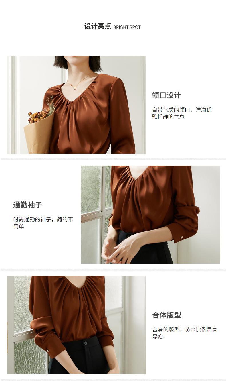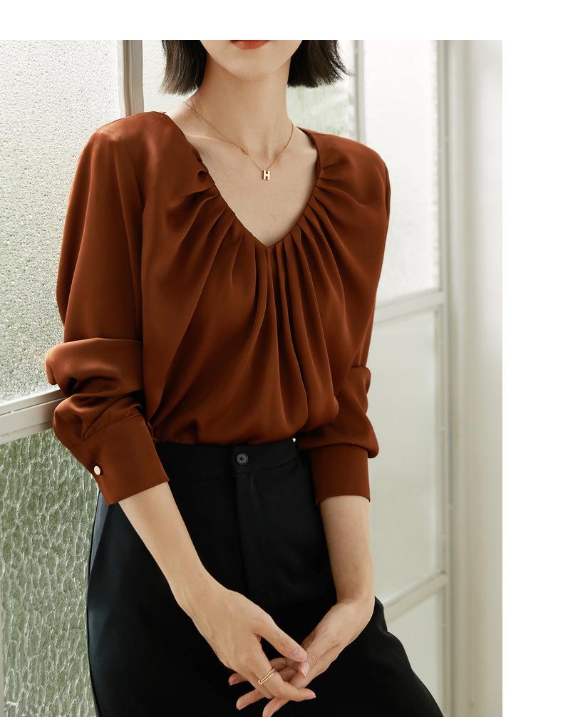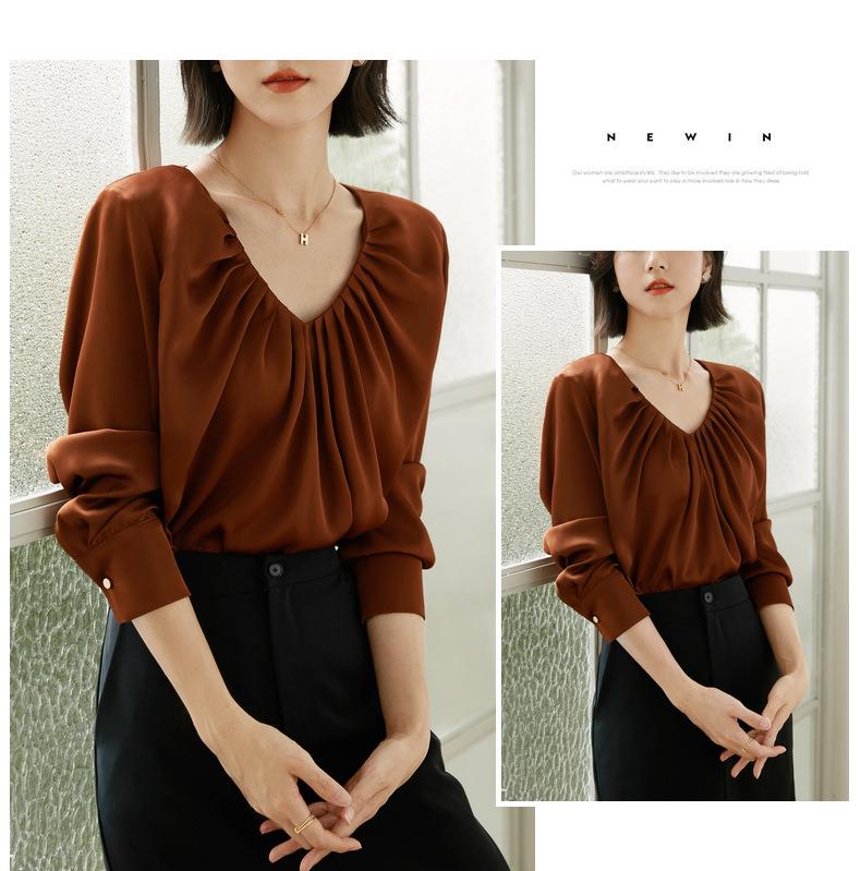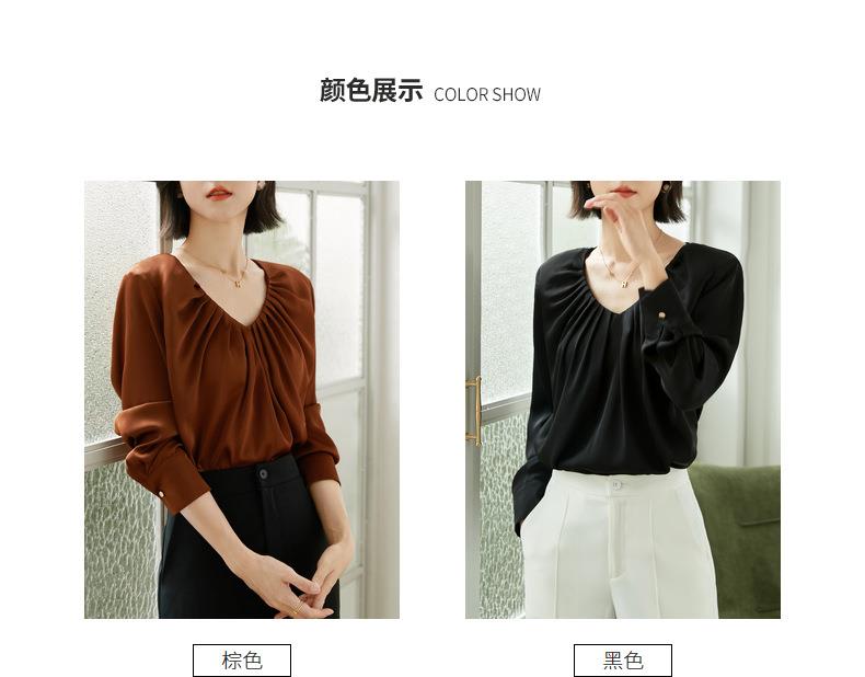 百姿 今年流行雪纺衫2022秋季新款V领洋气小衫褶皱衬衫长袖上衣女