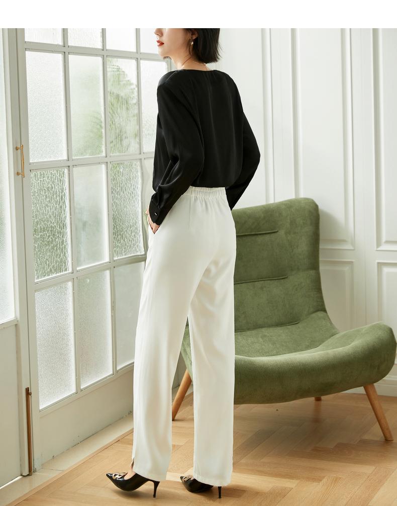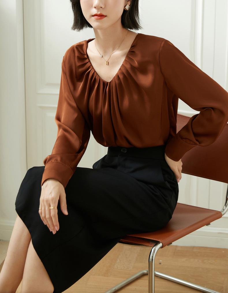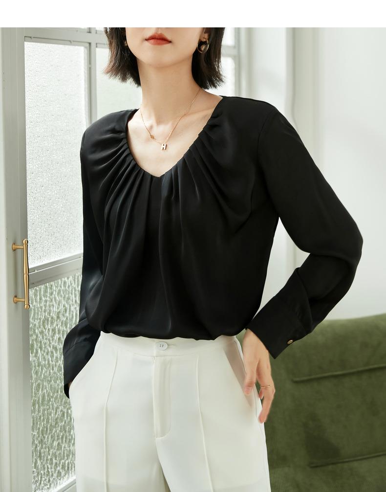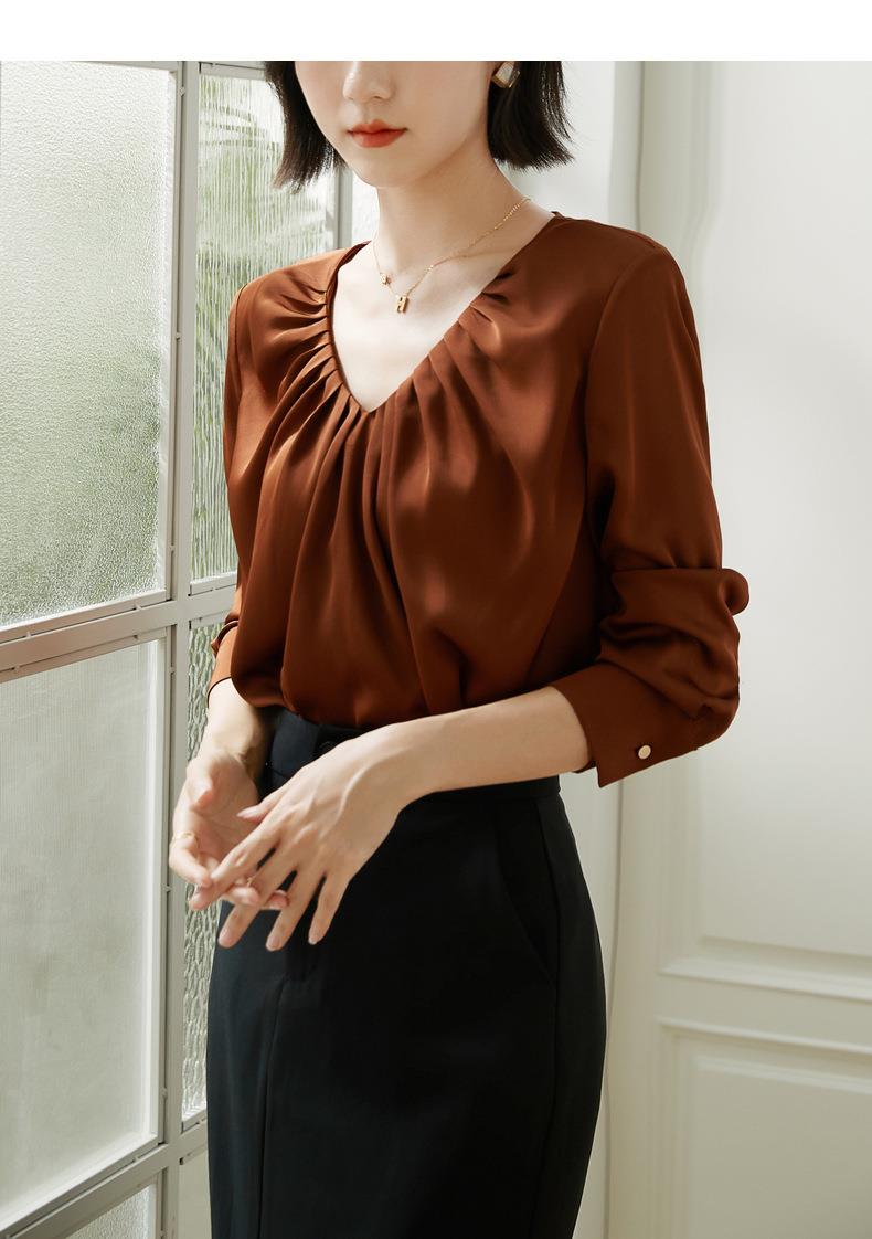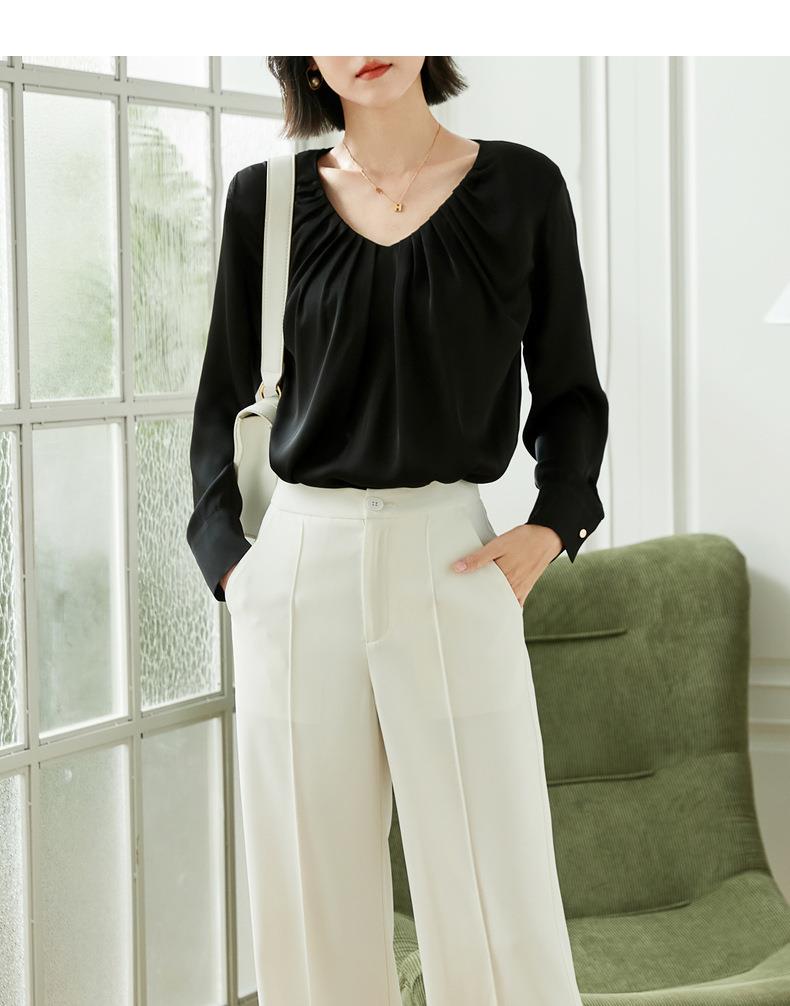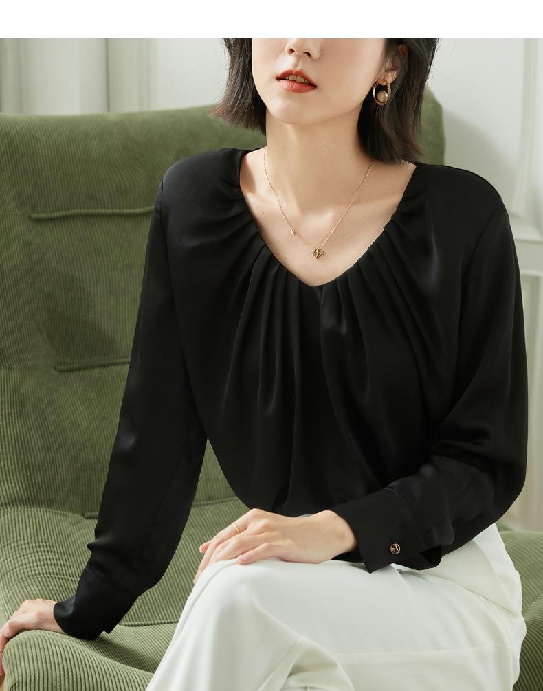 百姿 今年流行雪纺衫2022秋季新款V领洋气小衫褶皱衬衫长袖上衣女