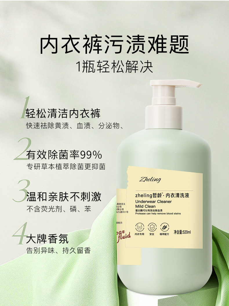 [小滋心选]【活动价¥29.9/3瓶】哲龄内衣清洗液专用去血渍留清香男女 内衣清洗剂 内裤洗衣液 300ml