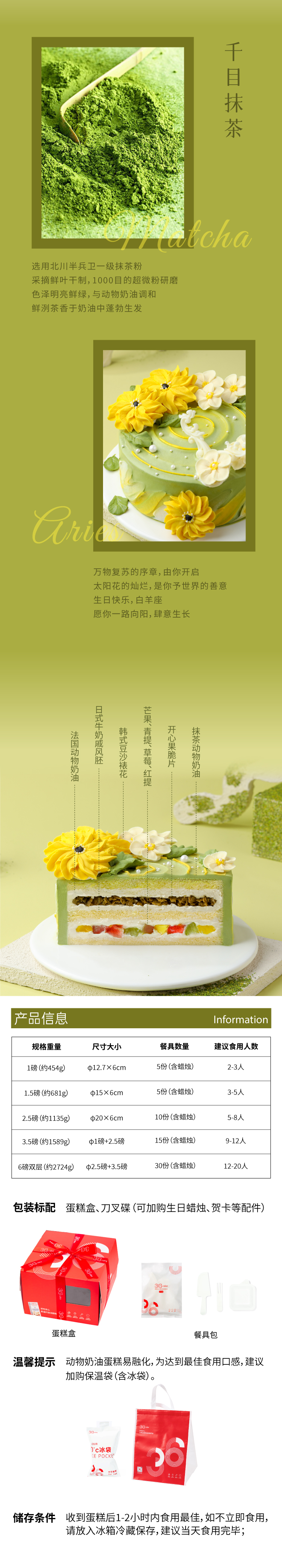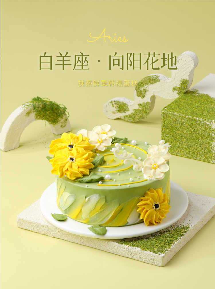 白羊座 ∙ 向阳花地 ∙ 抹茶鲜果韩裱蛋糕,可选1/1.5/2.5/3.5/6磅 | 36CAKE