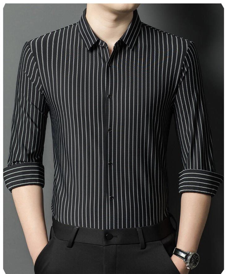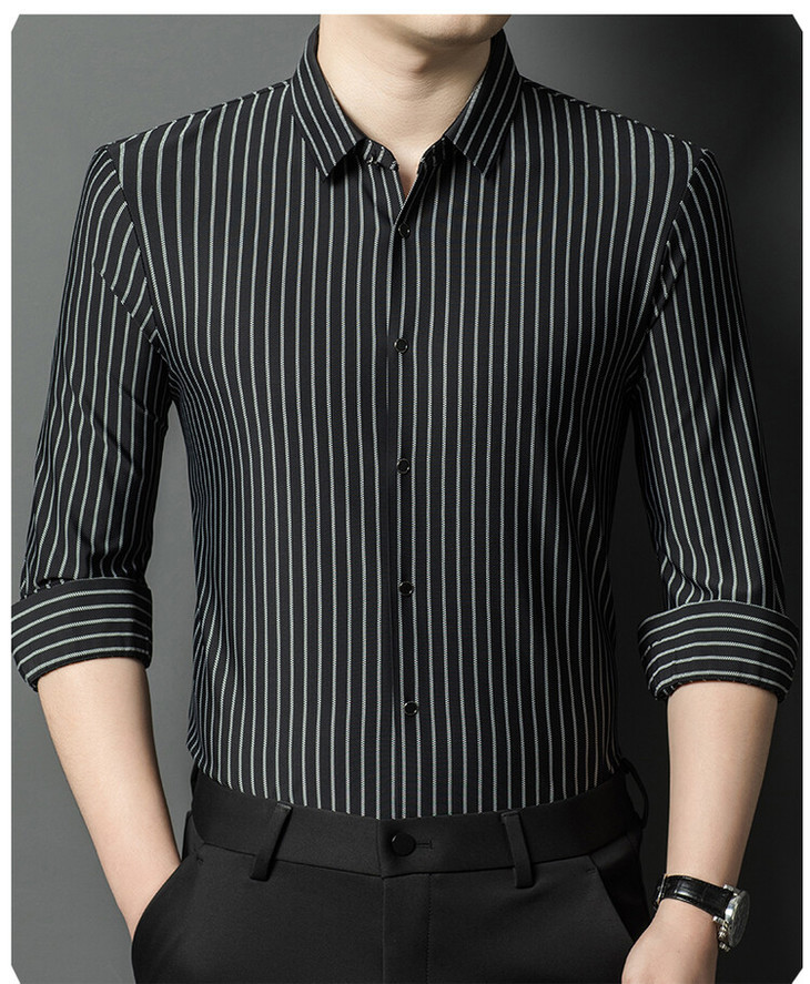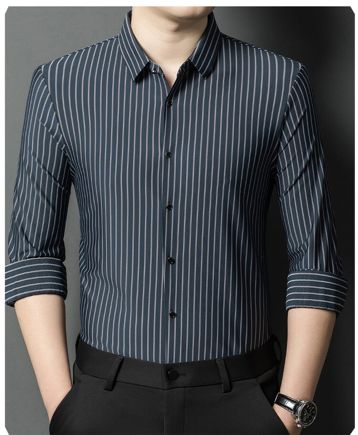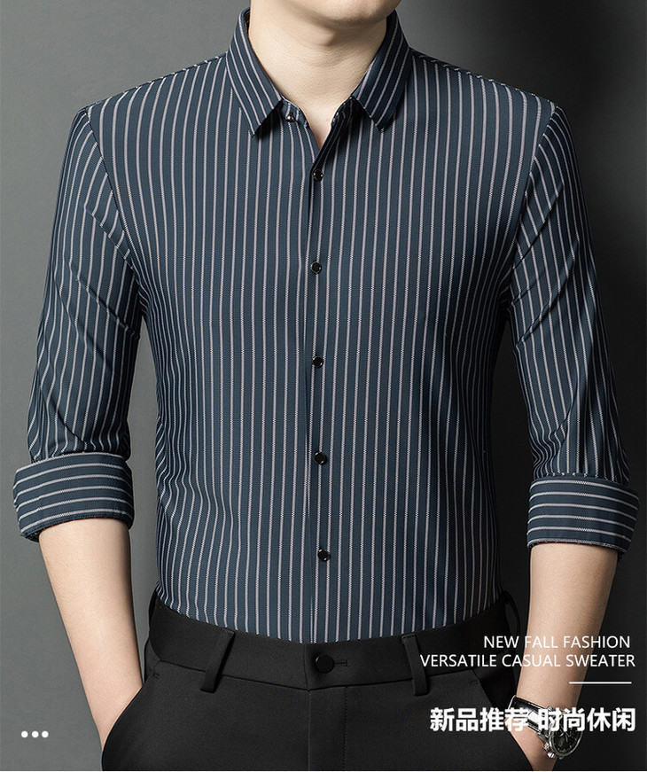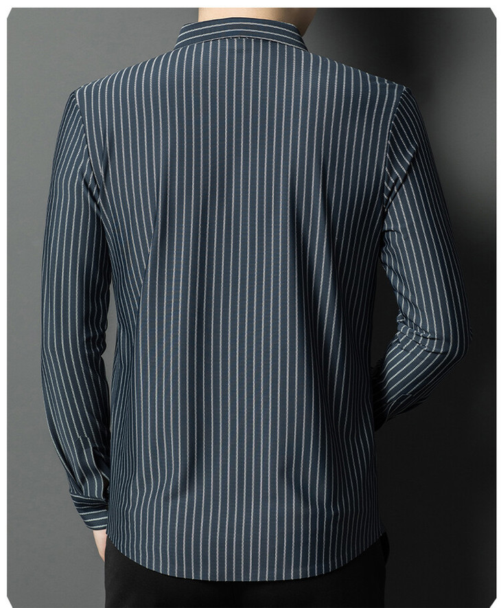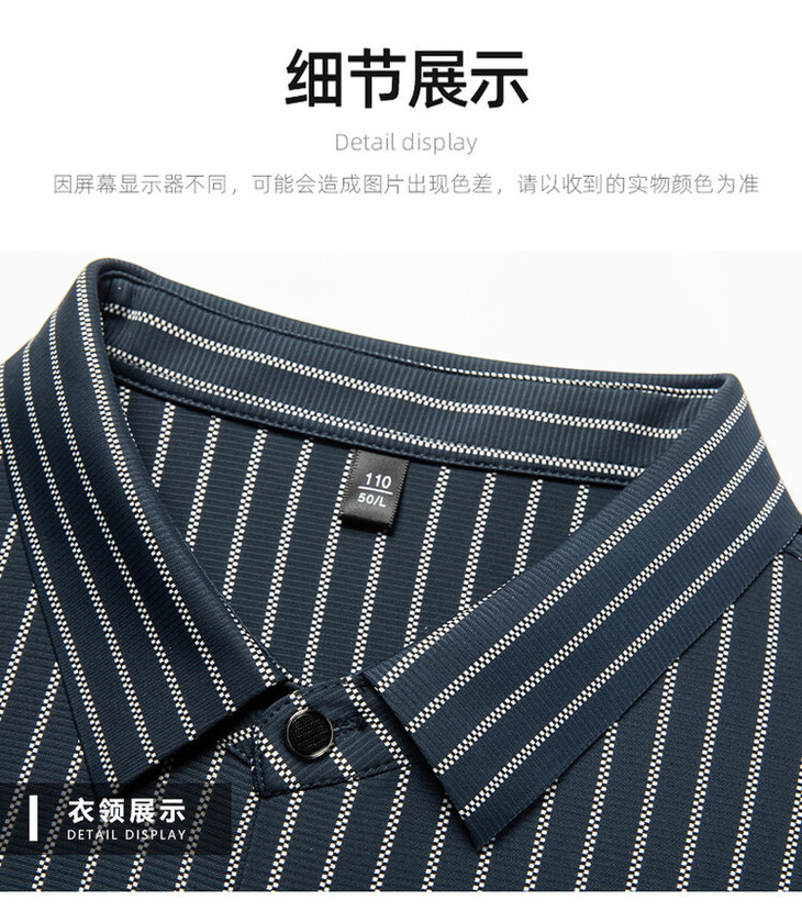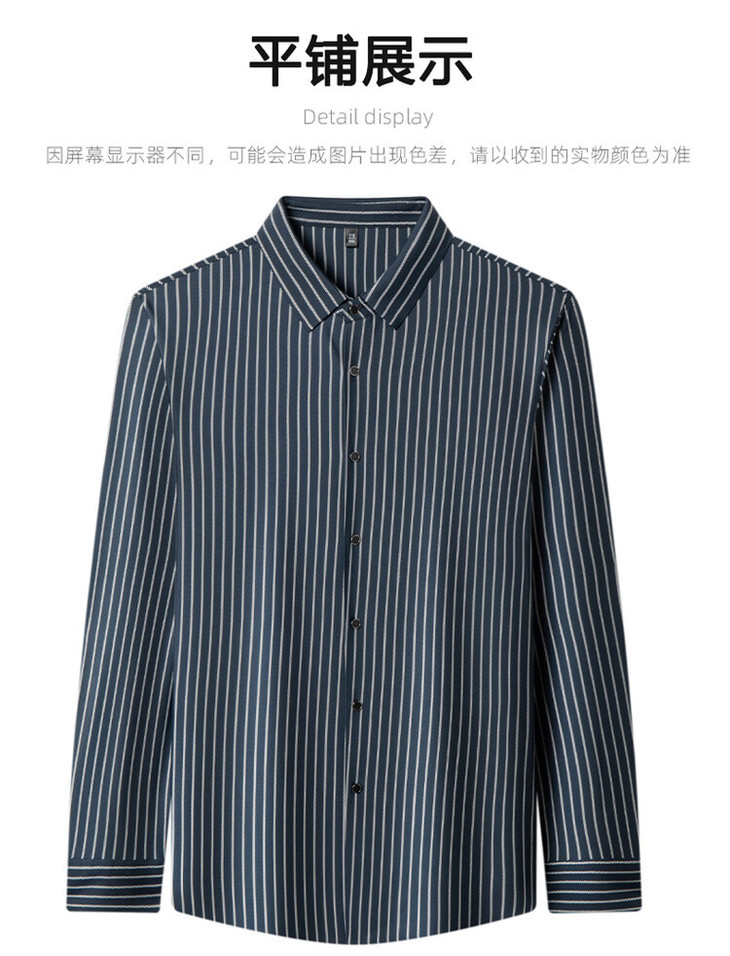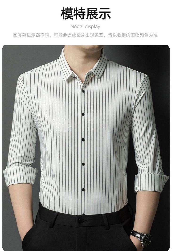 高档轻奢男装长袖衬衫 春季新款翻领条纹锦氨衬衣中年商务休闲上衣