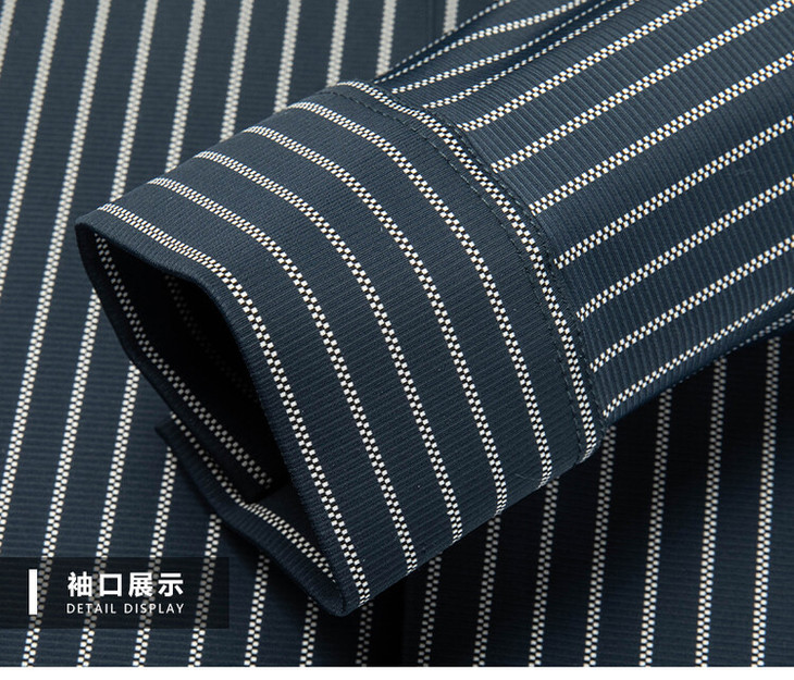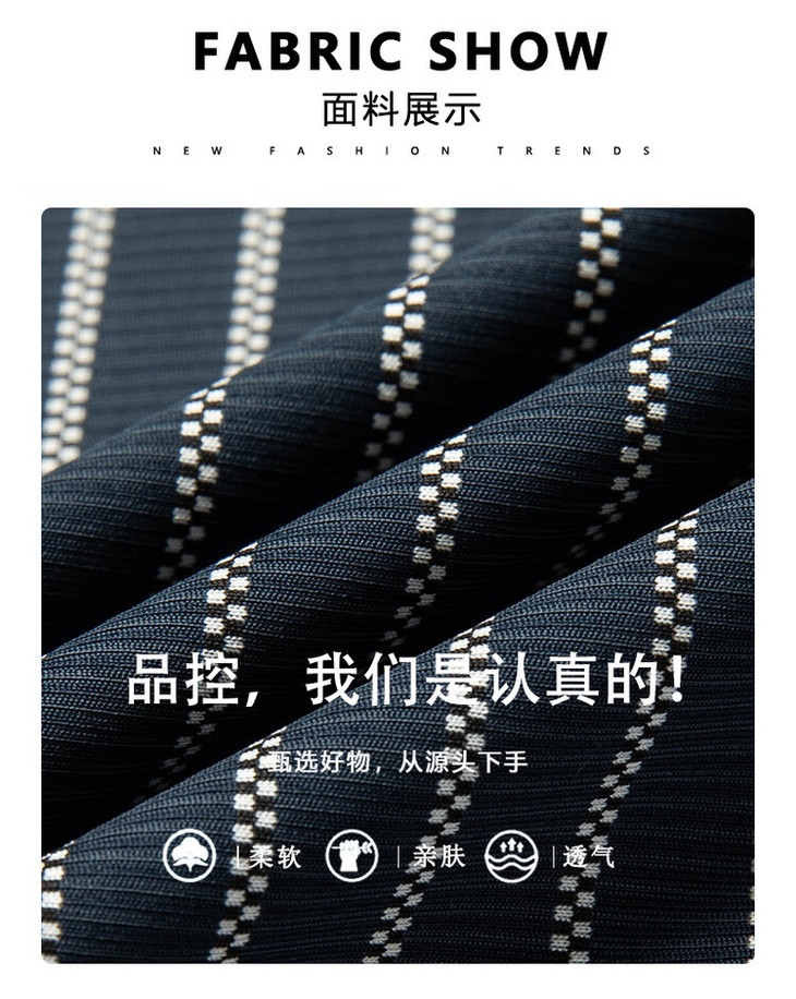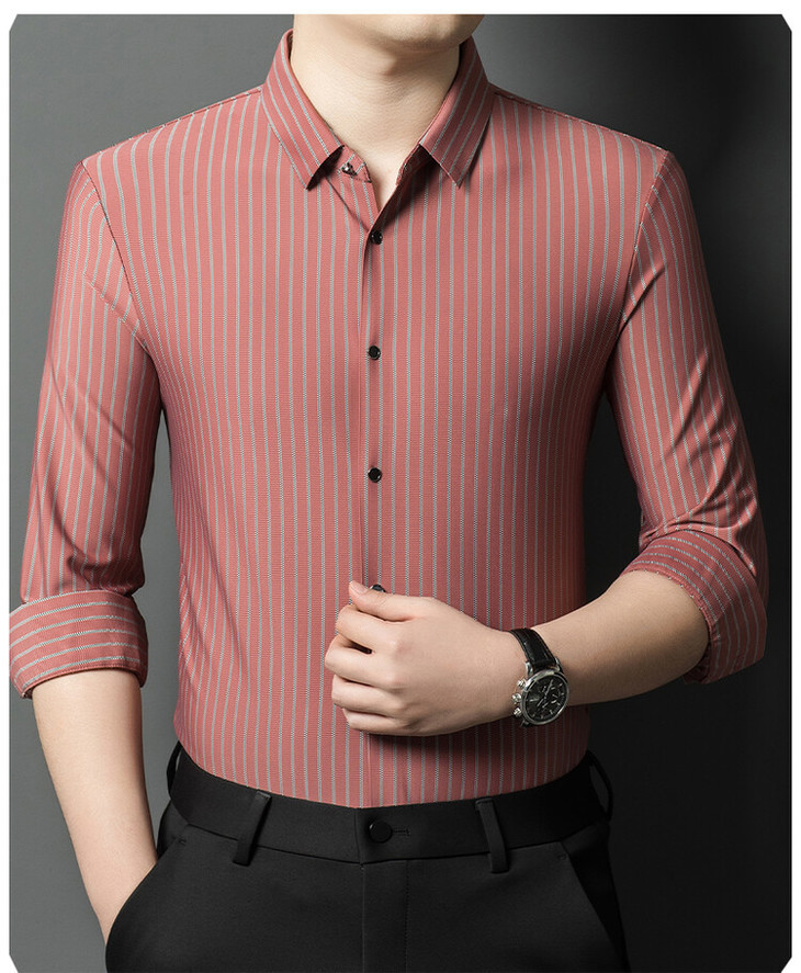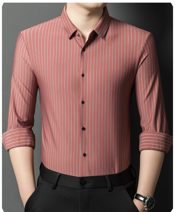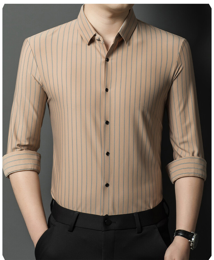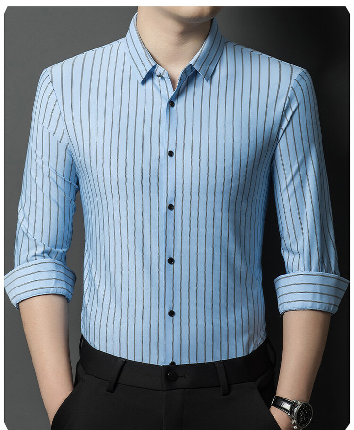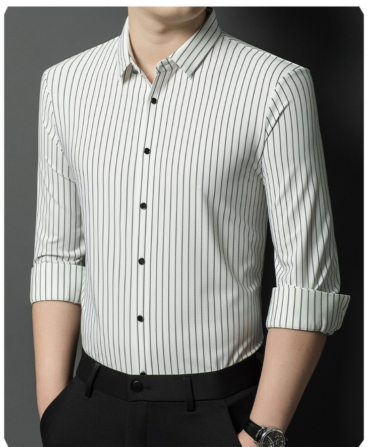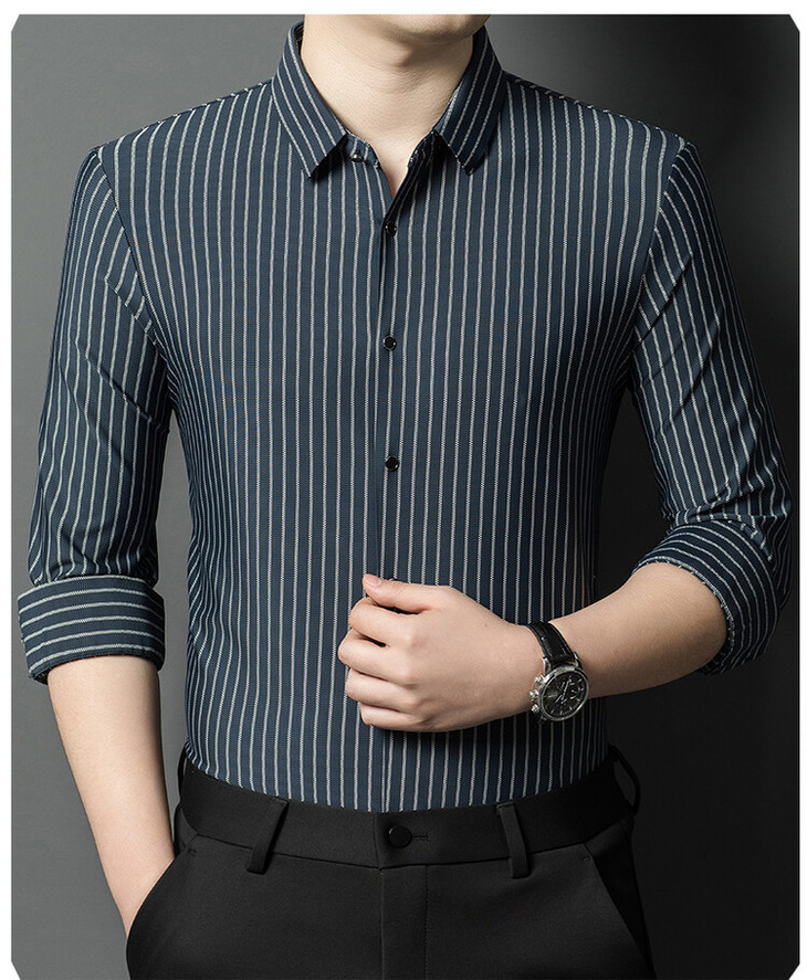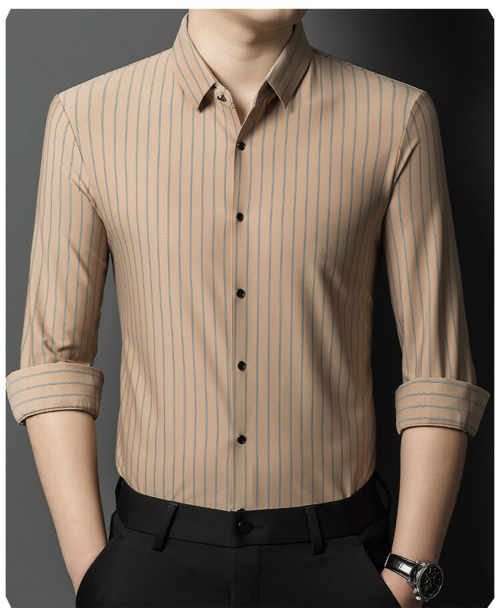 高档轻奢男装长袖衬衫 春季新款翻领条纹锦氨衬衣中年商务休闲上衣