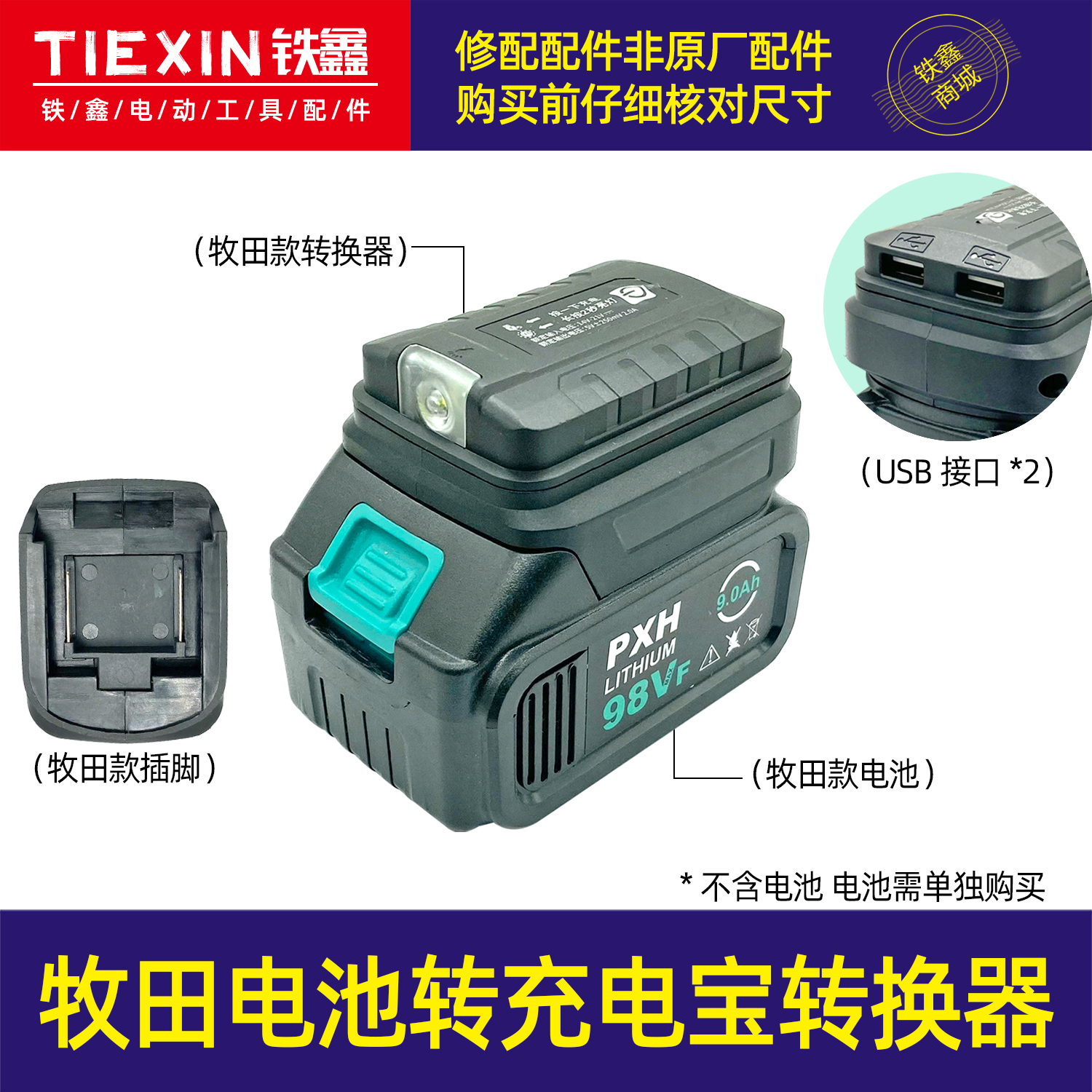 【货号04998】牧田扳手电池转换手机充电宝转换头牧田电动扳手电池充电宝转换器
