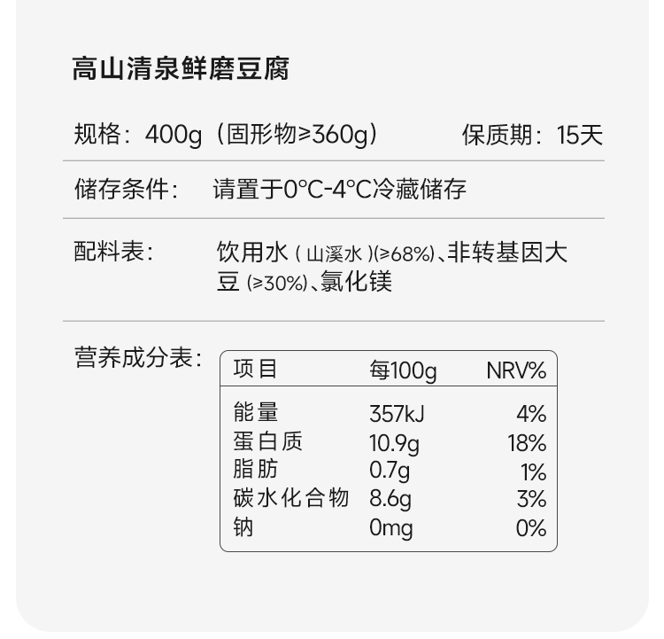 下厨房|高山清泉鲜磨豆腐400g/盒 台州非遗手工技艺制作