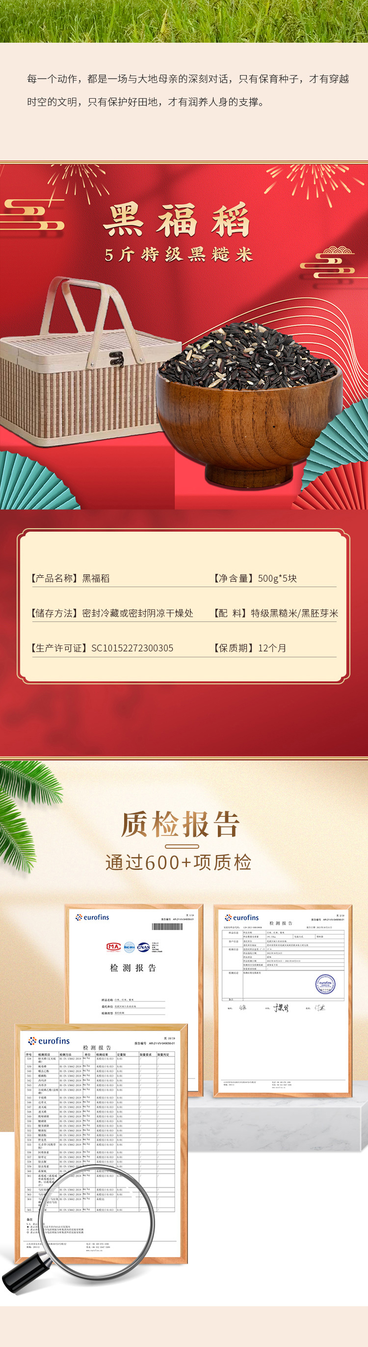 【凤品优选】 贵州闲土农场 黑福稻 500g*5/提 特级糙米/胚芽米 千载古稻 含胚芽651项农残未检出