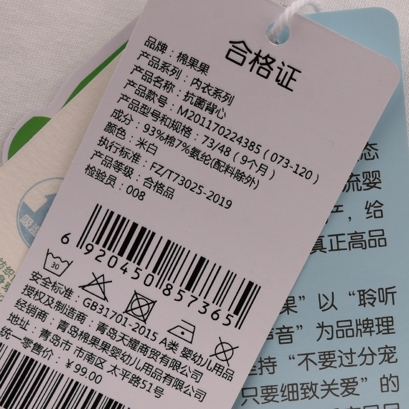 棉果果夏季新品5A抗菌纯棉背心M201170224385