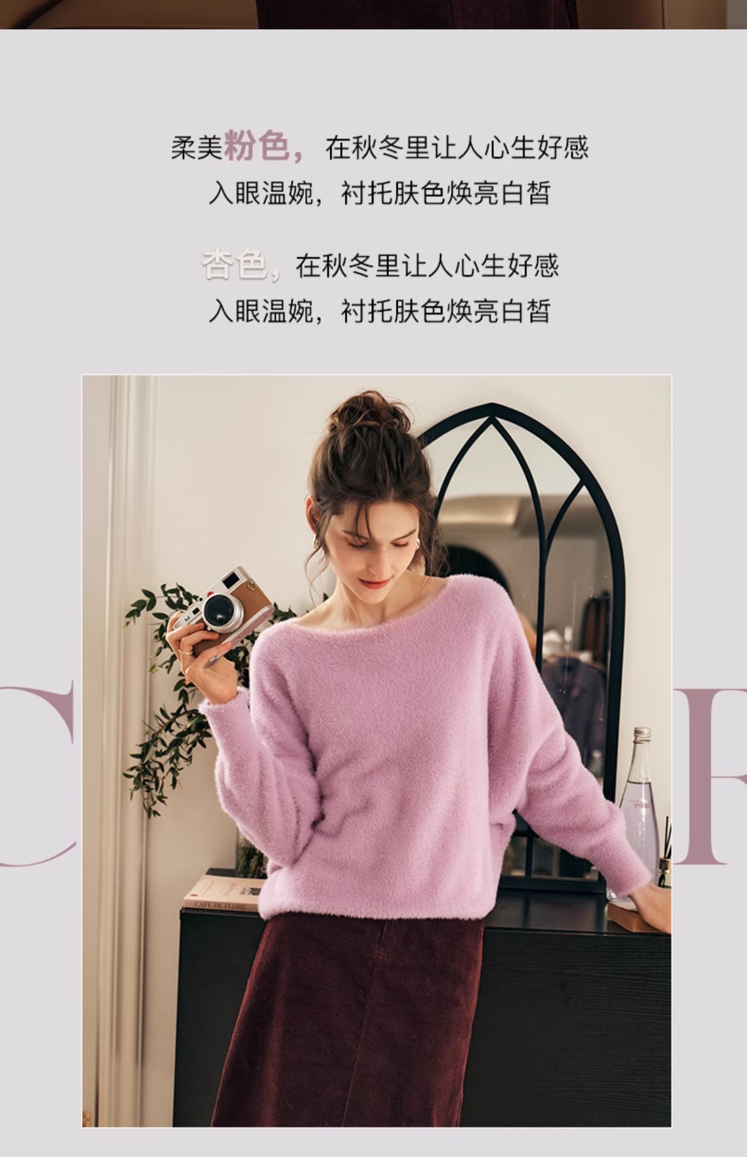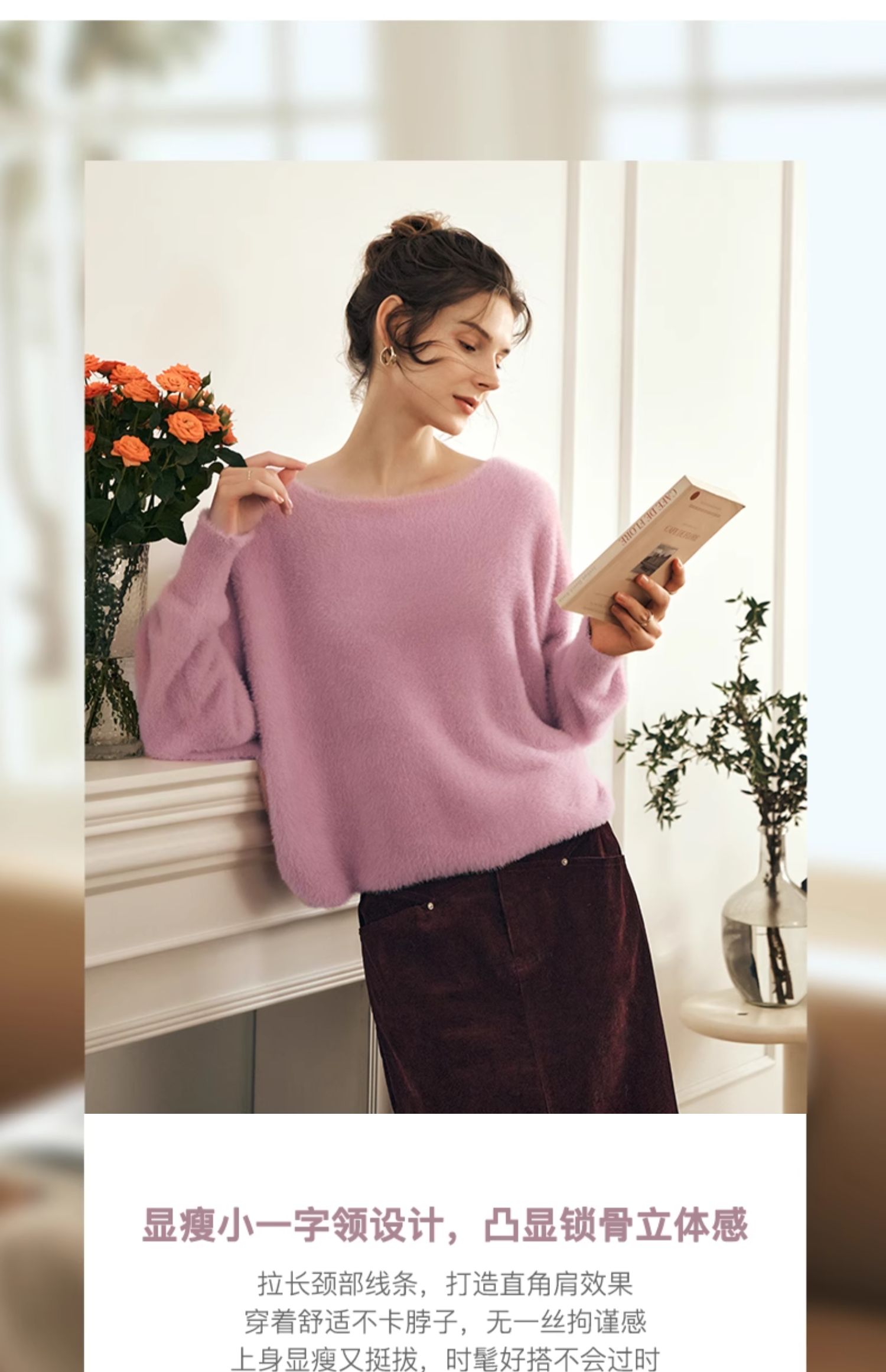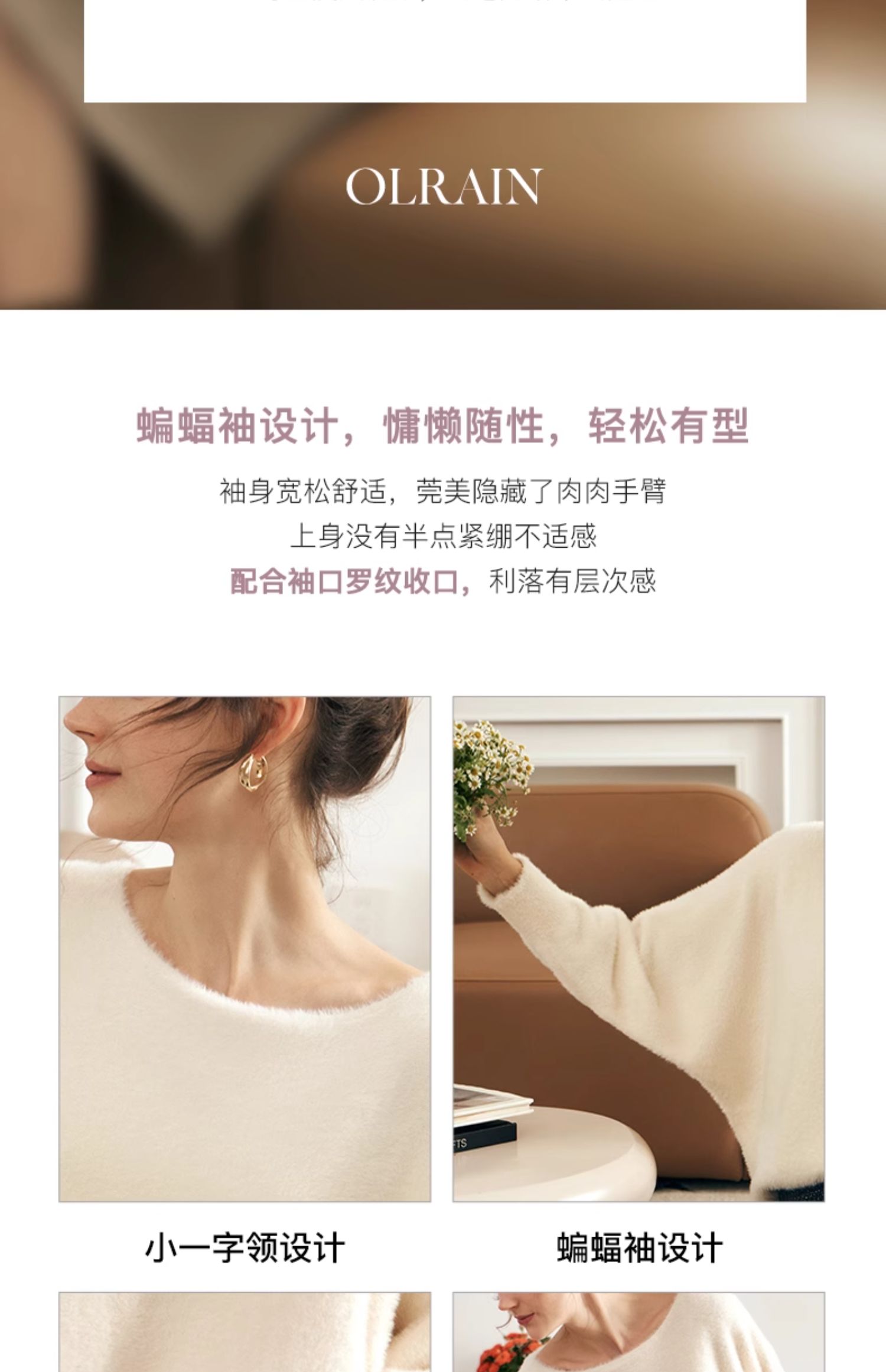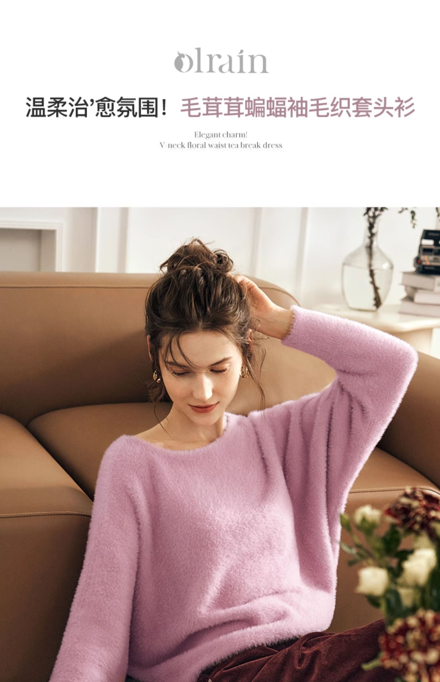 OLrain欧芮儿法式粉色套头毛衣女秋冬2023年新款慵懒宽松圆领上衣