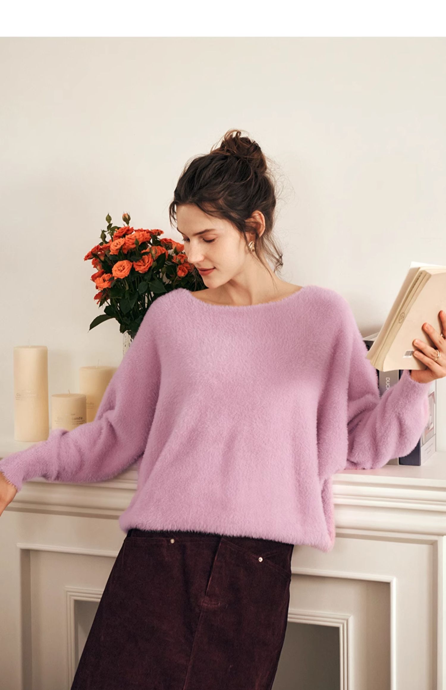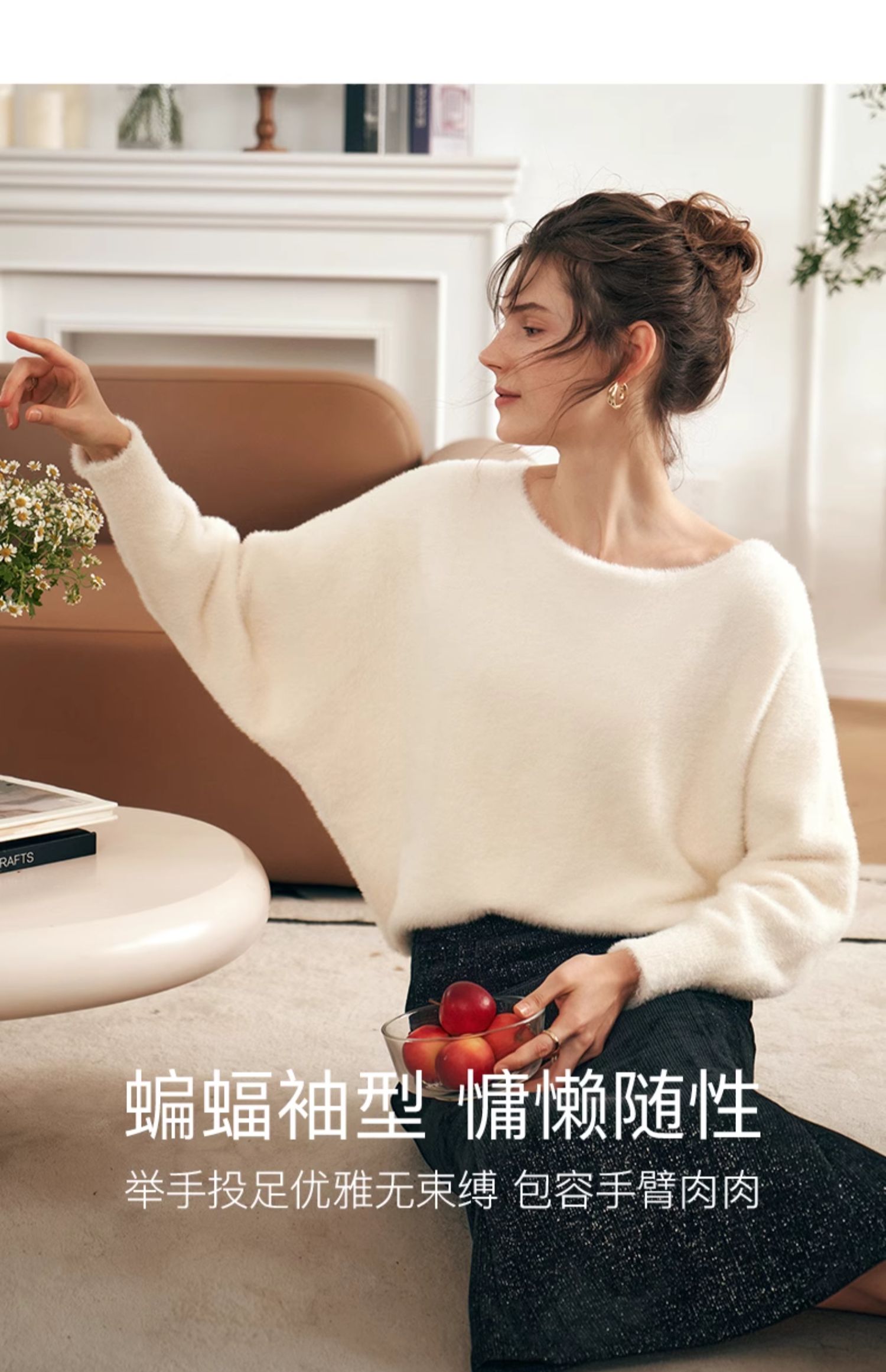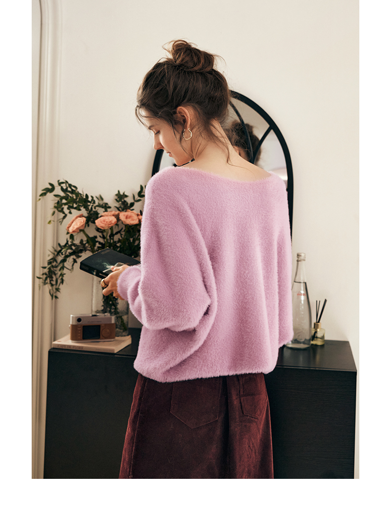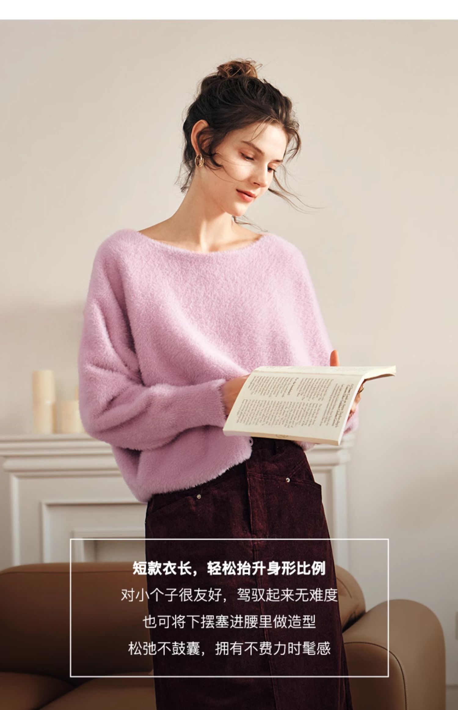 OLrain欧芮儿法式粉色套头毛衣女秋冬2023年新款慵懒宽松圆领上衣