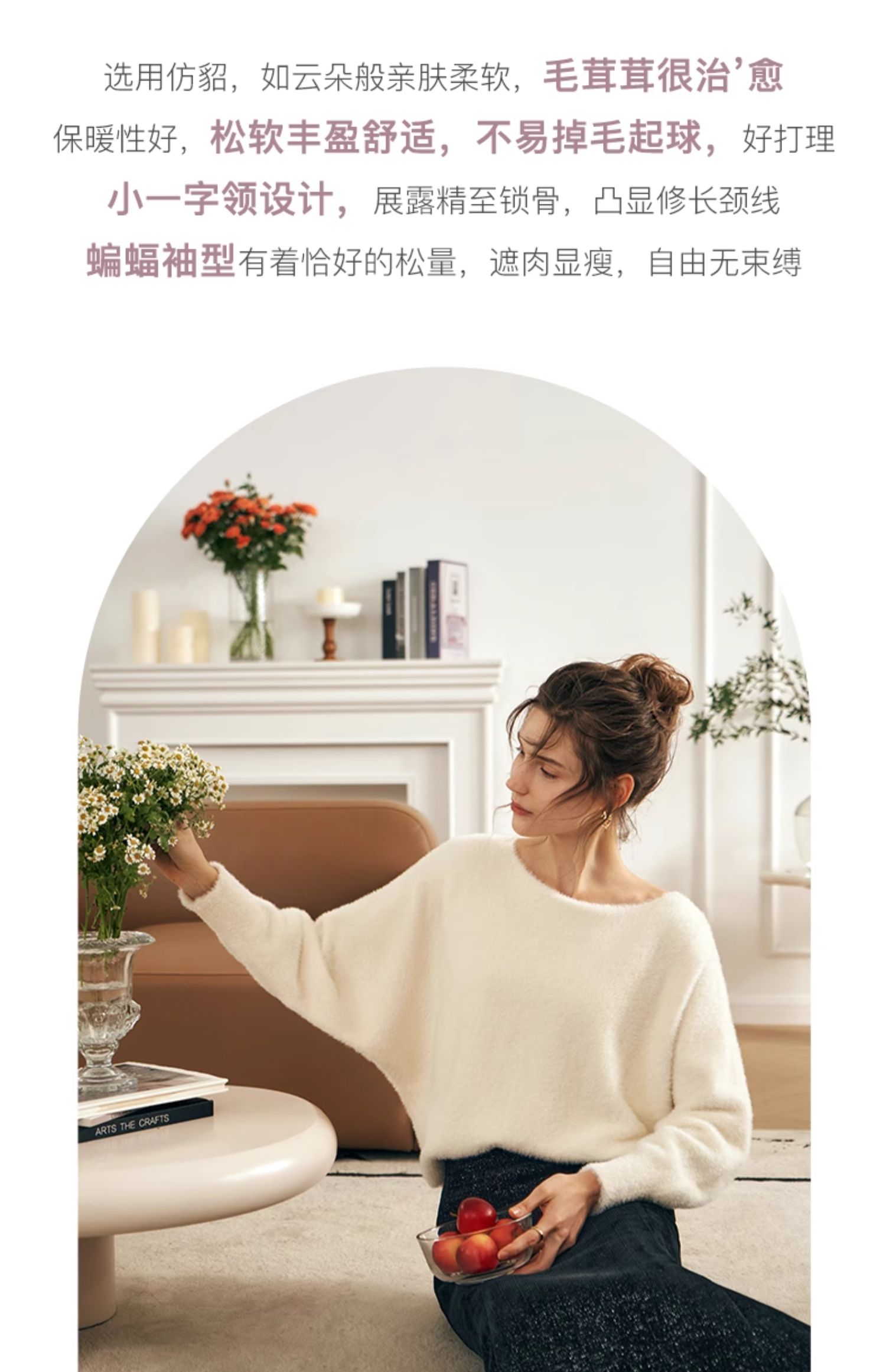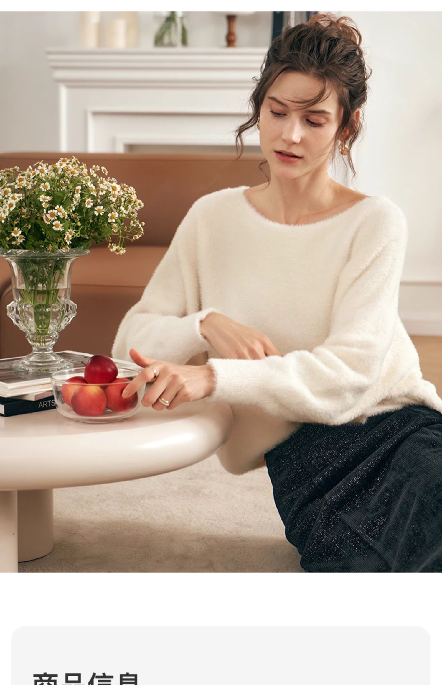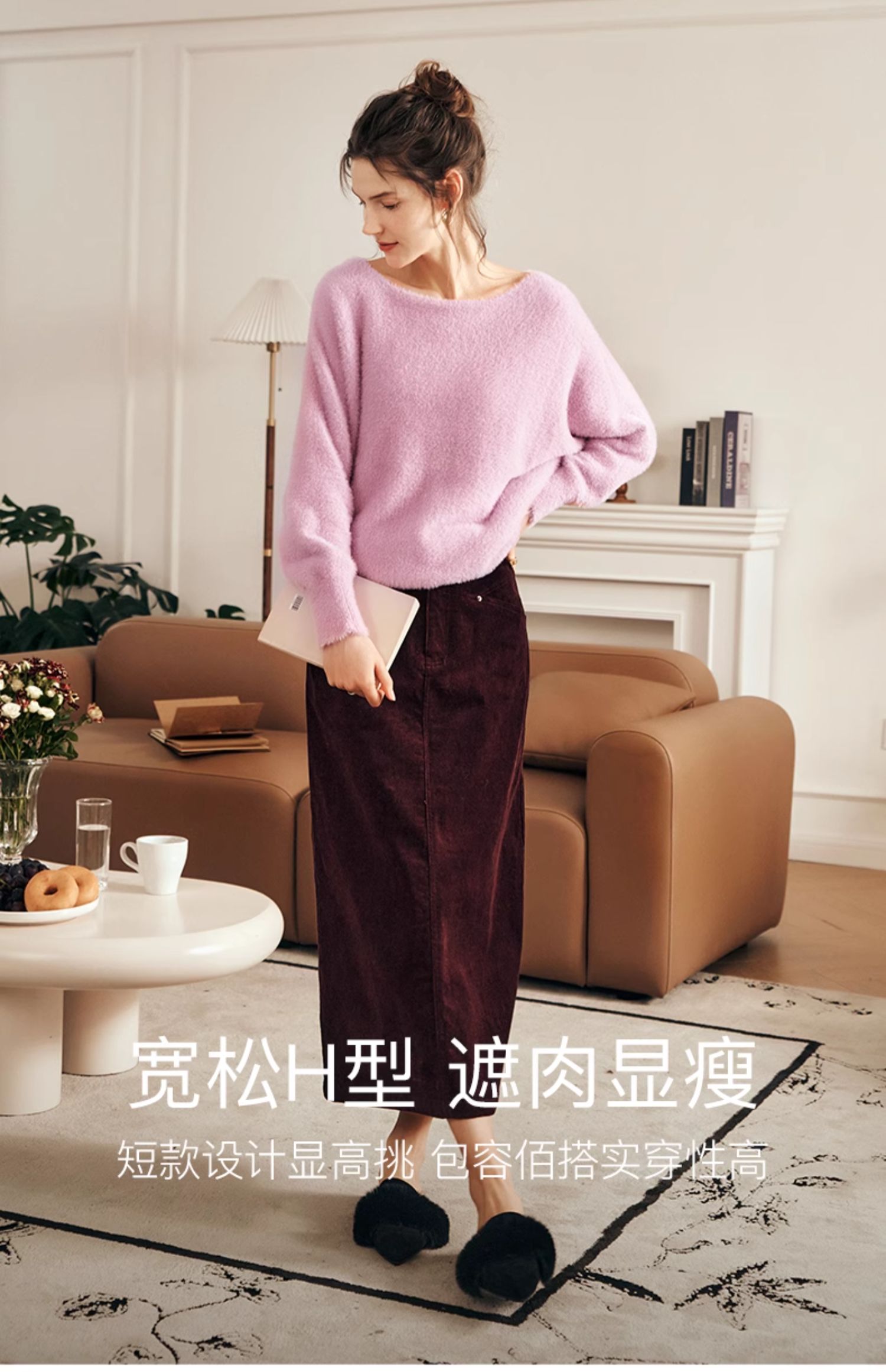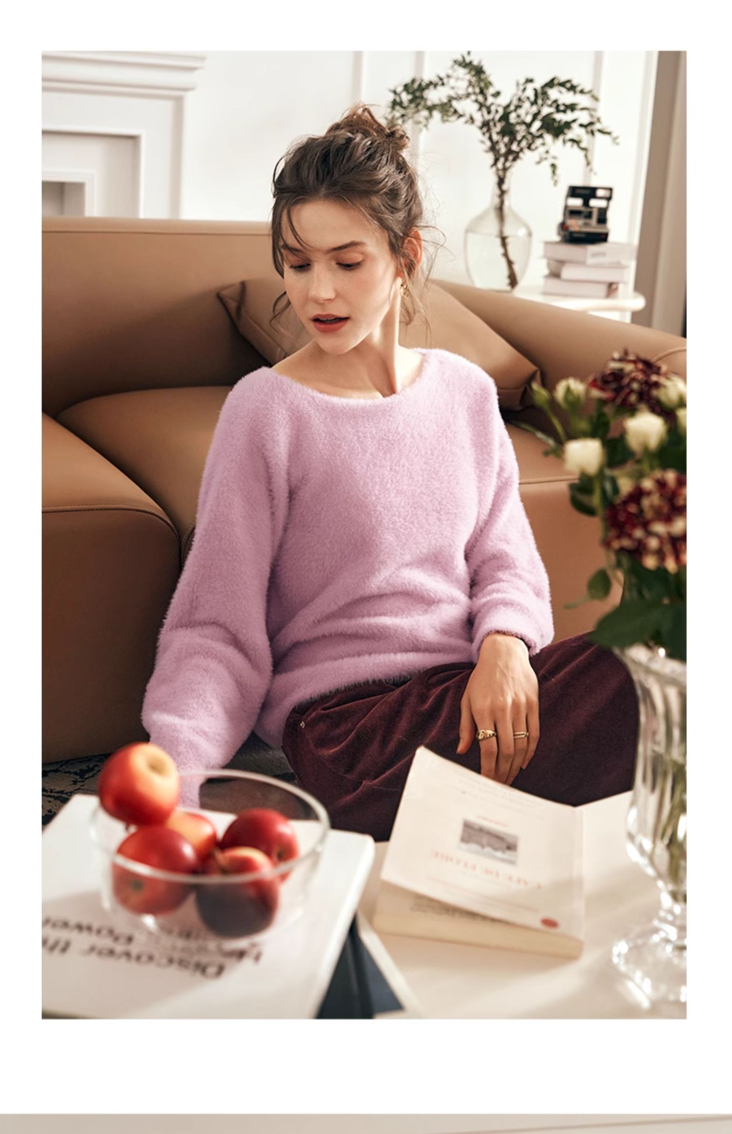 OLrain欧芮儿法式粉色套头毛衣女秋冬2023年新款慵懒宽松圆领上衣