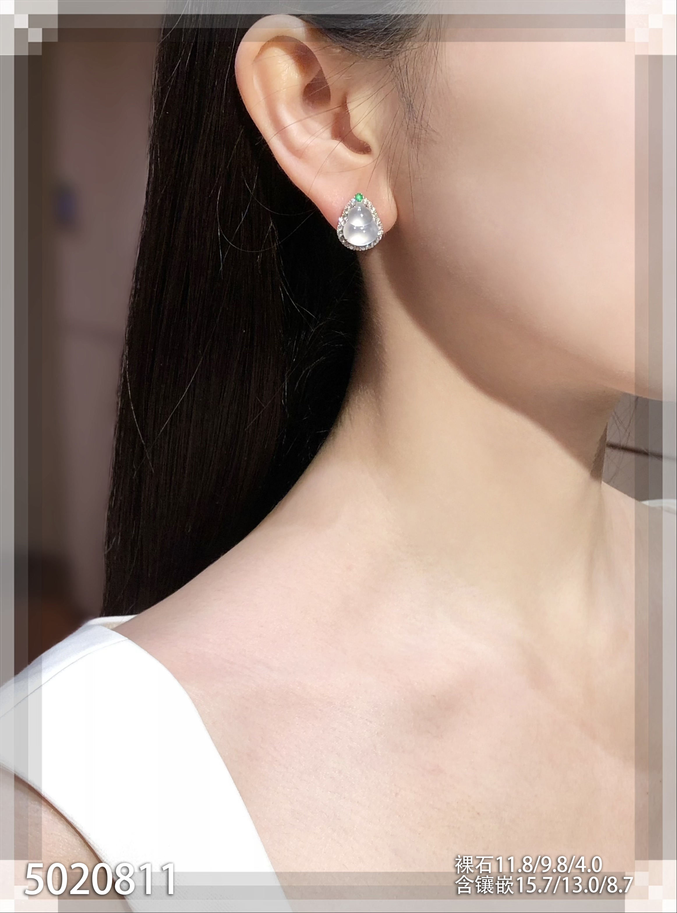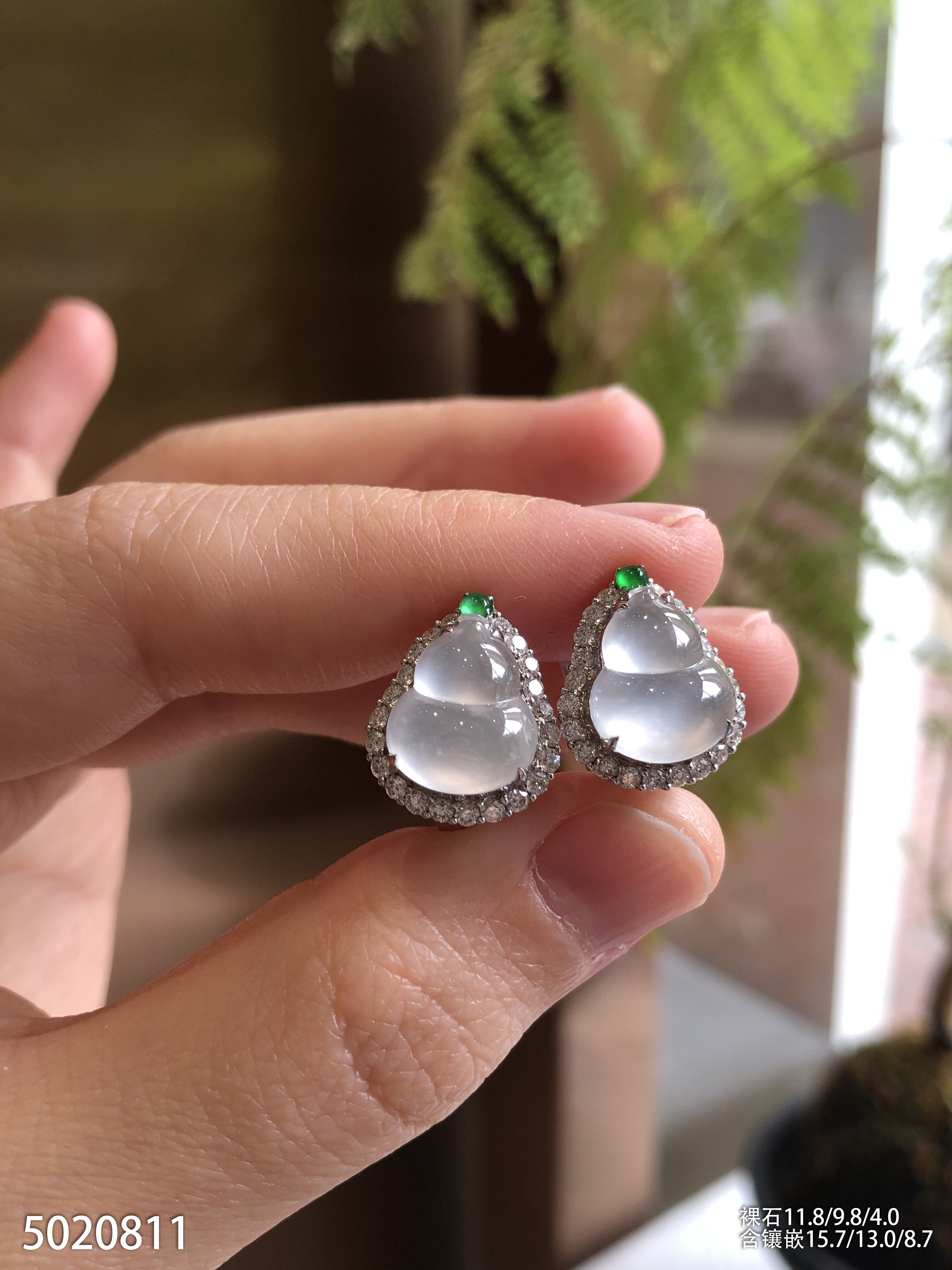 高冰种艳绿葫芦耳坠 72999【6024304】