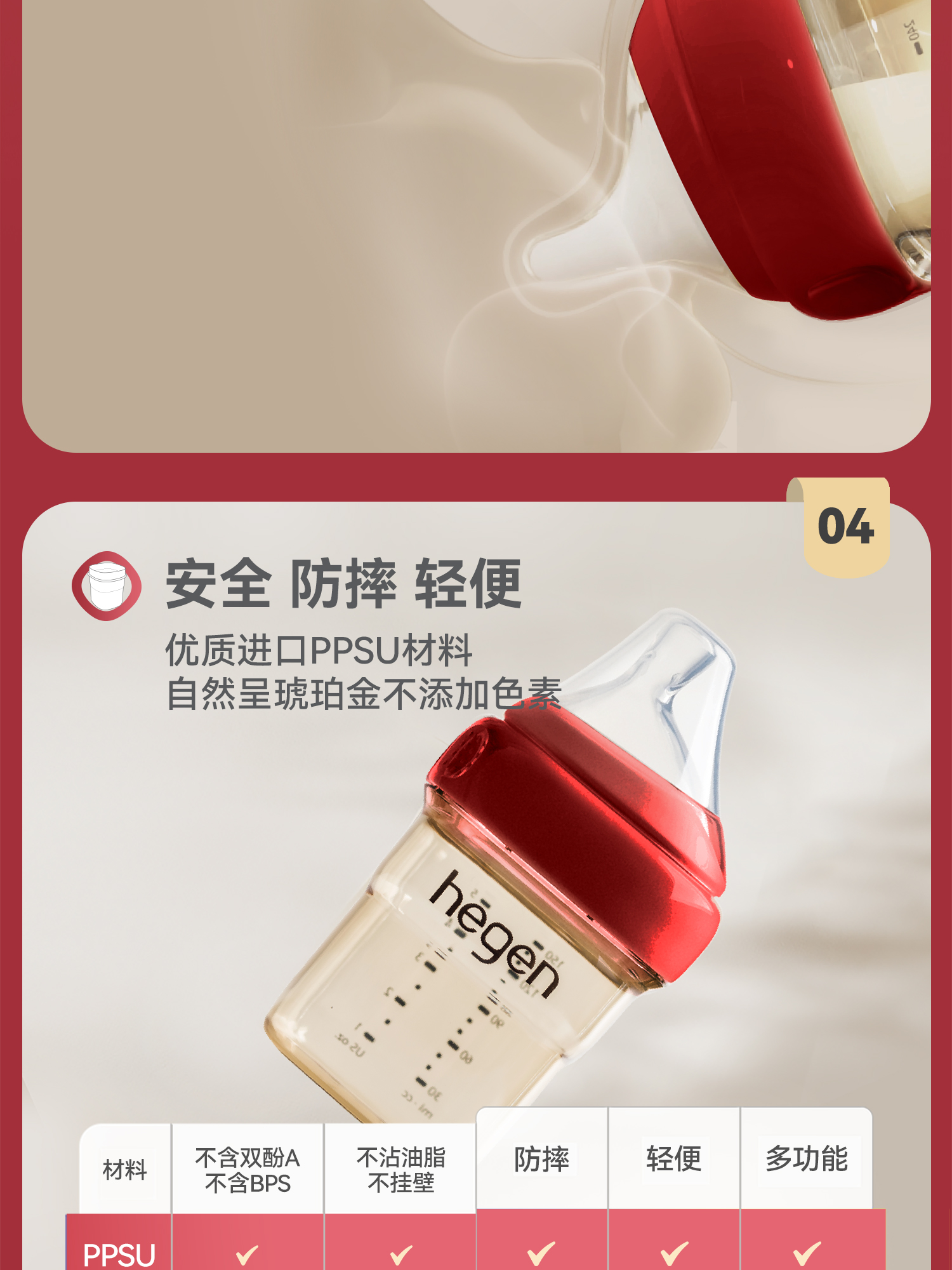 Hegen海格恩 婴儿多功能PPSU奶瓶(粉/蓝/紫/大麦金)