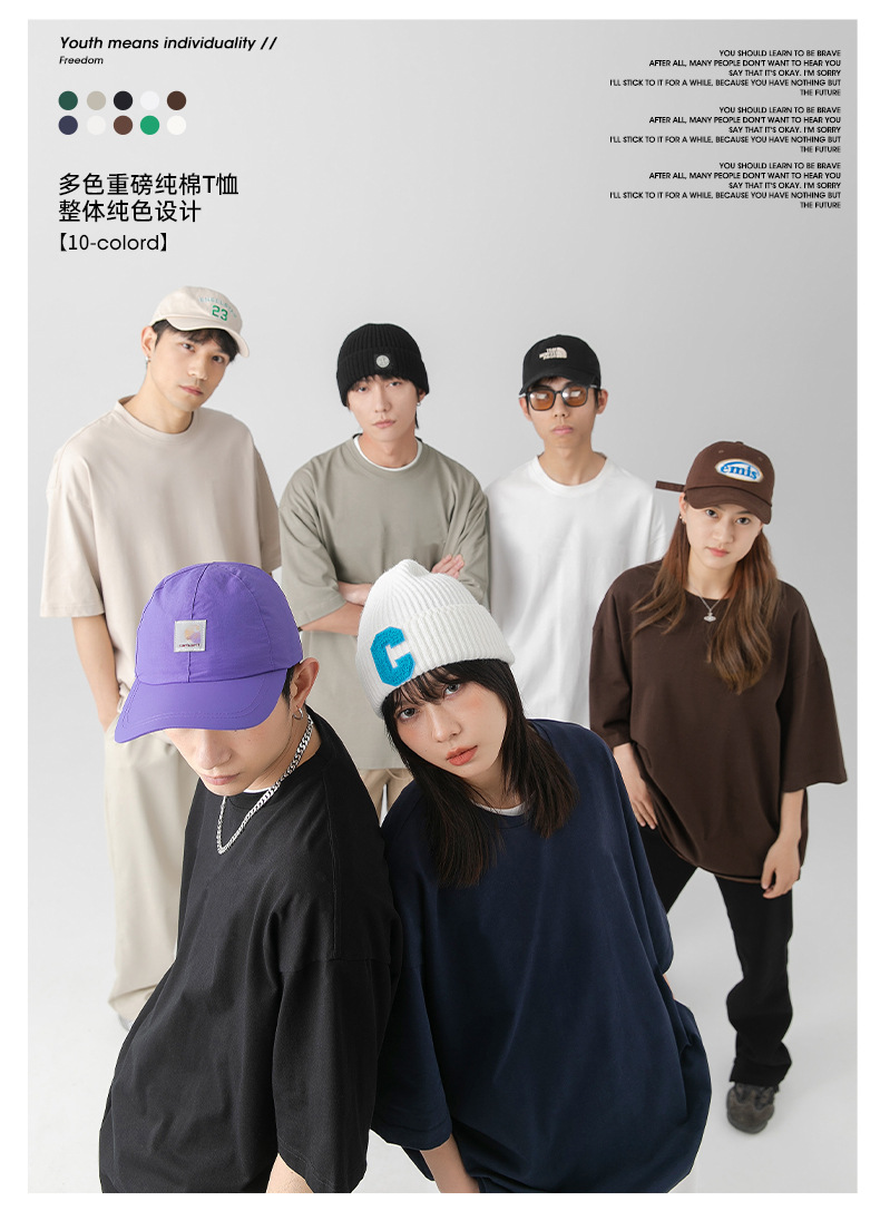 「十款配色! 250g重磅棉」韩路日系男装 250g重磅纯棉T恤 男春夏新款宽松多色打底衫短袖上衣