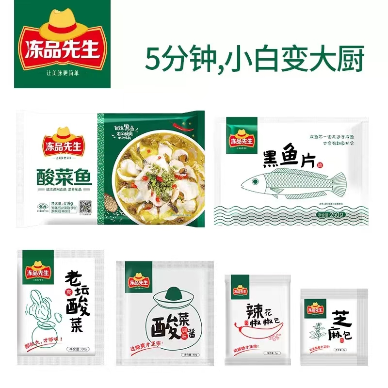 【严选】冻品先生红烧猪脚630g*1袋+冻品先生鱼香肉丝370g*1袋+冻品先生酸菜鱼419g*1袋