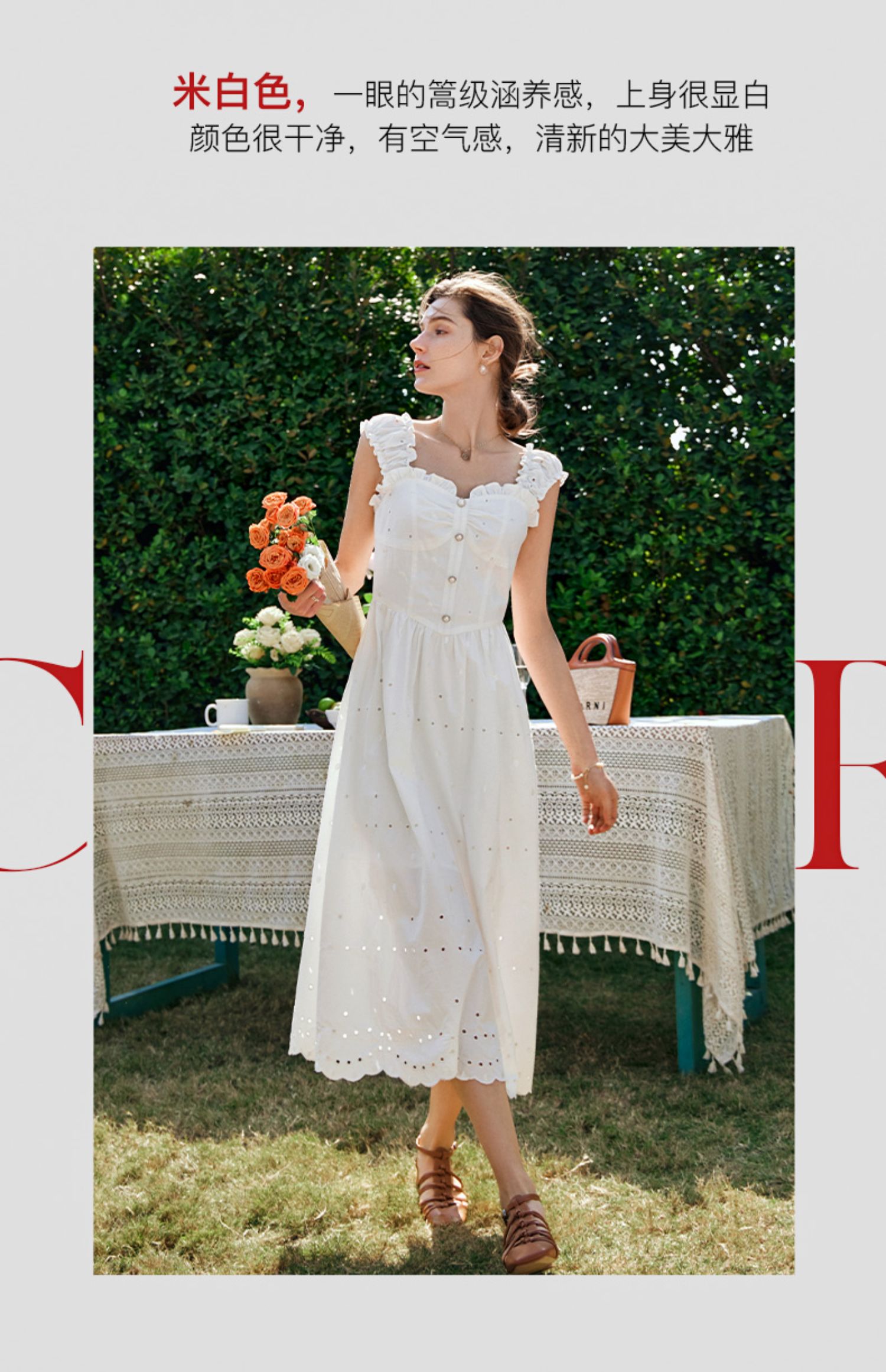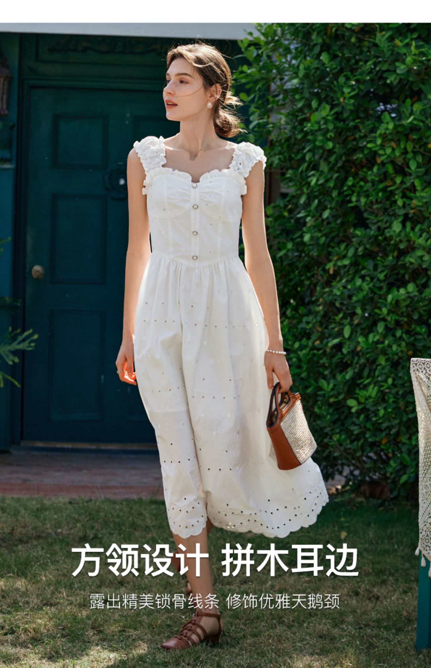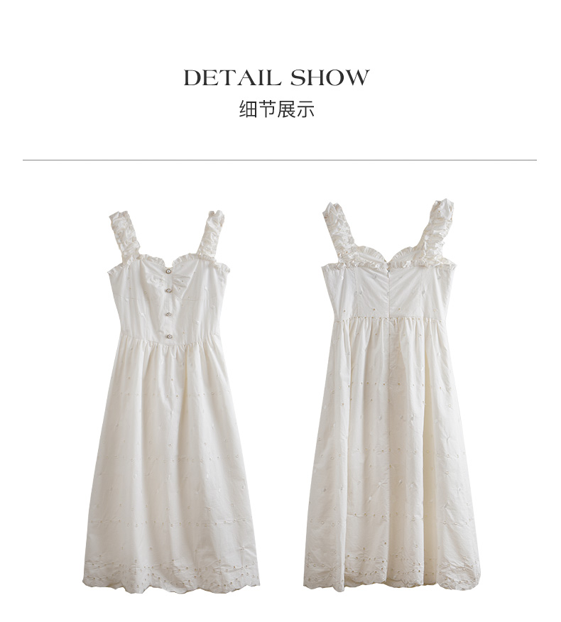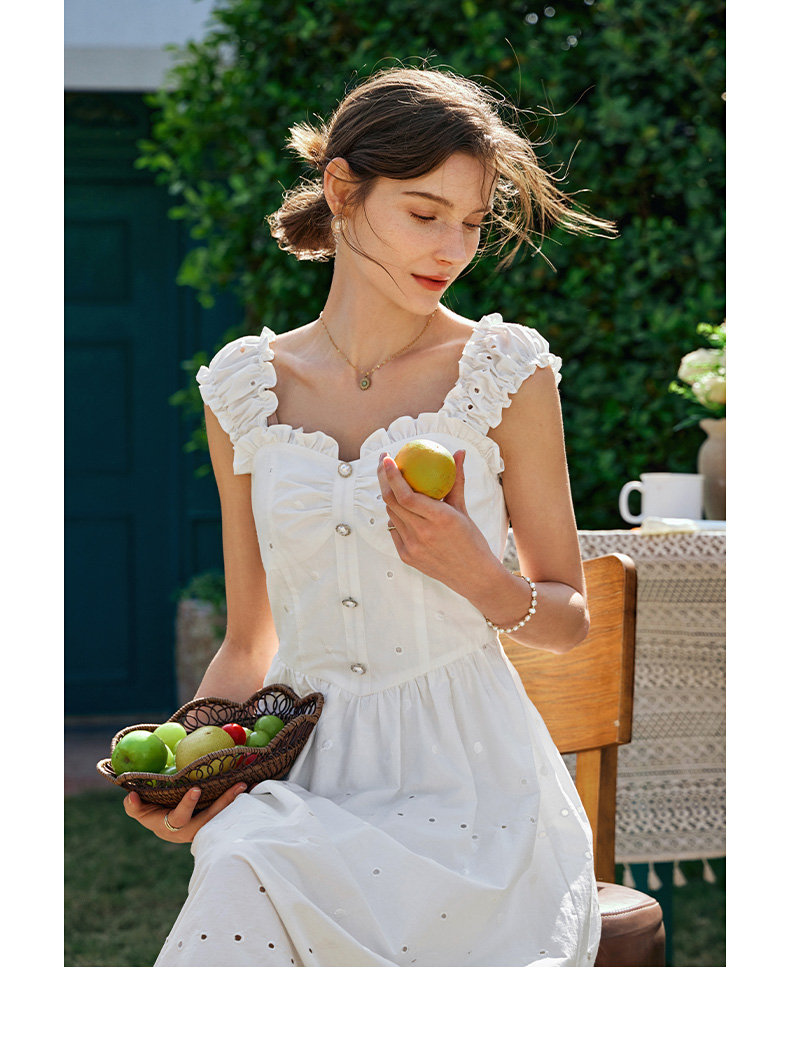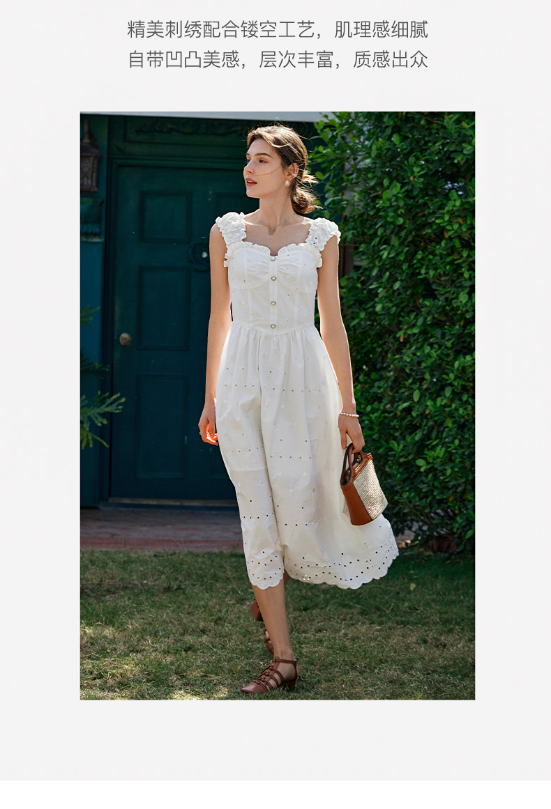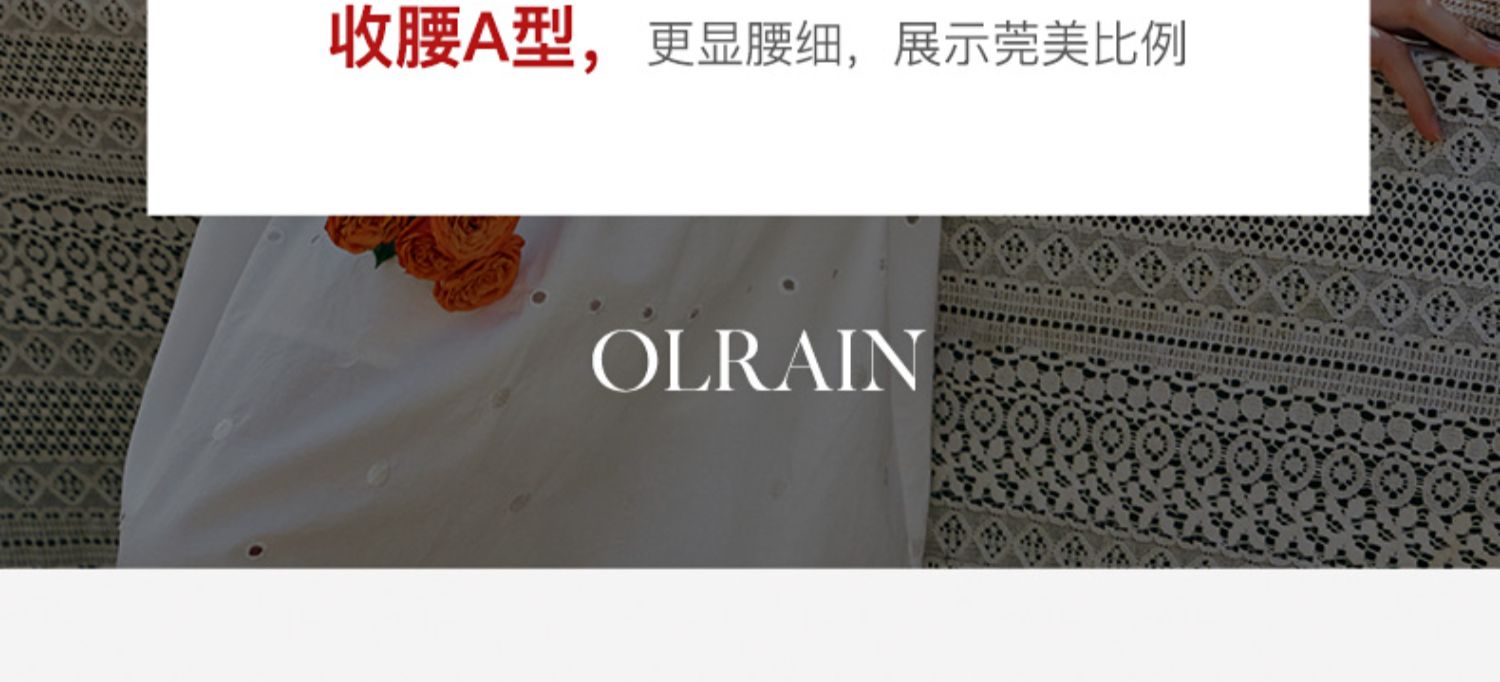 OLrain欧芮儿法式米白色连衣裙女早春2024新款方领收腰显瘦长裙