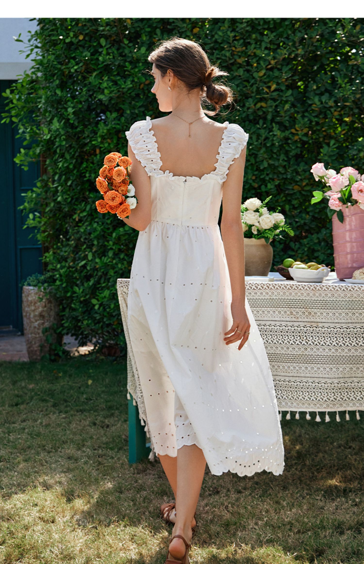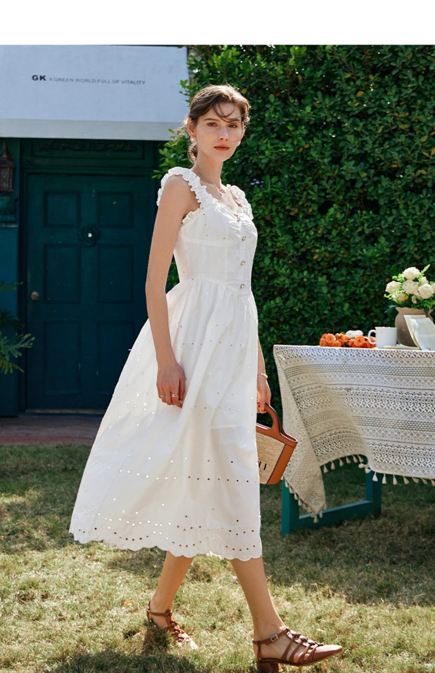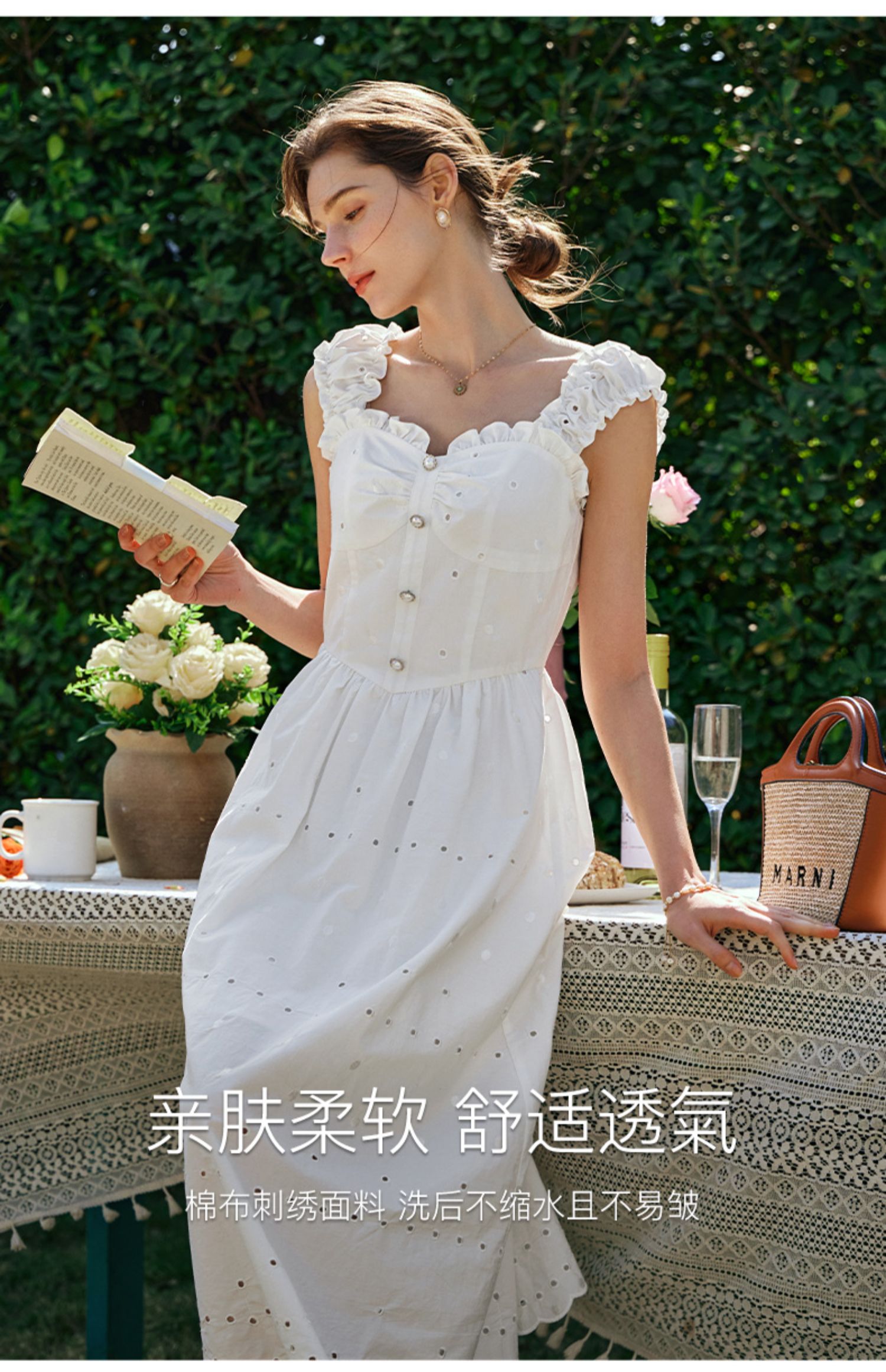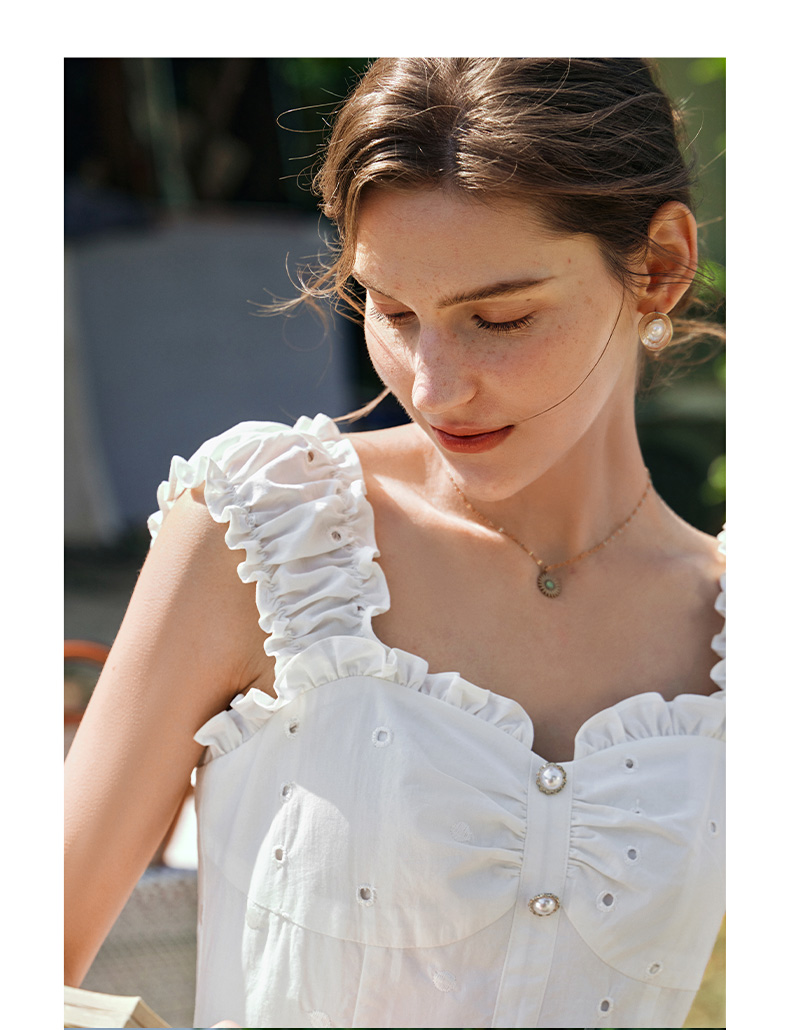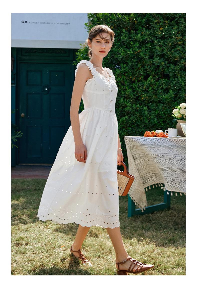 OLrain欧芮儿法式米白色连衣裙女早春2024新款方领收腰显瘦长裙
