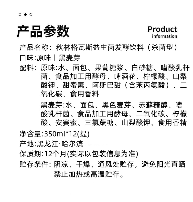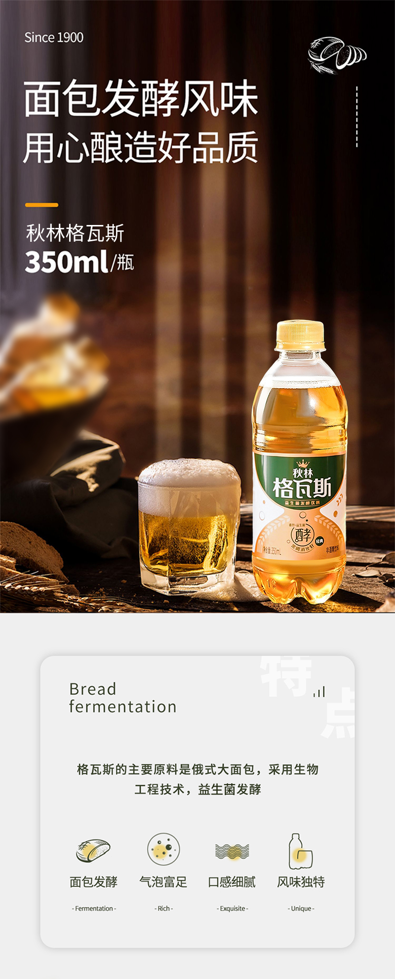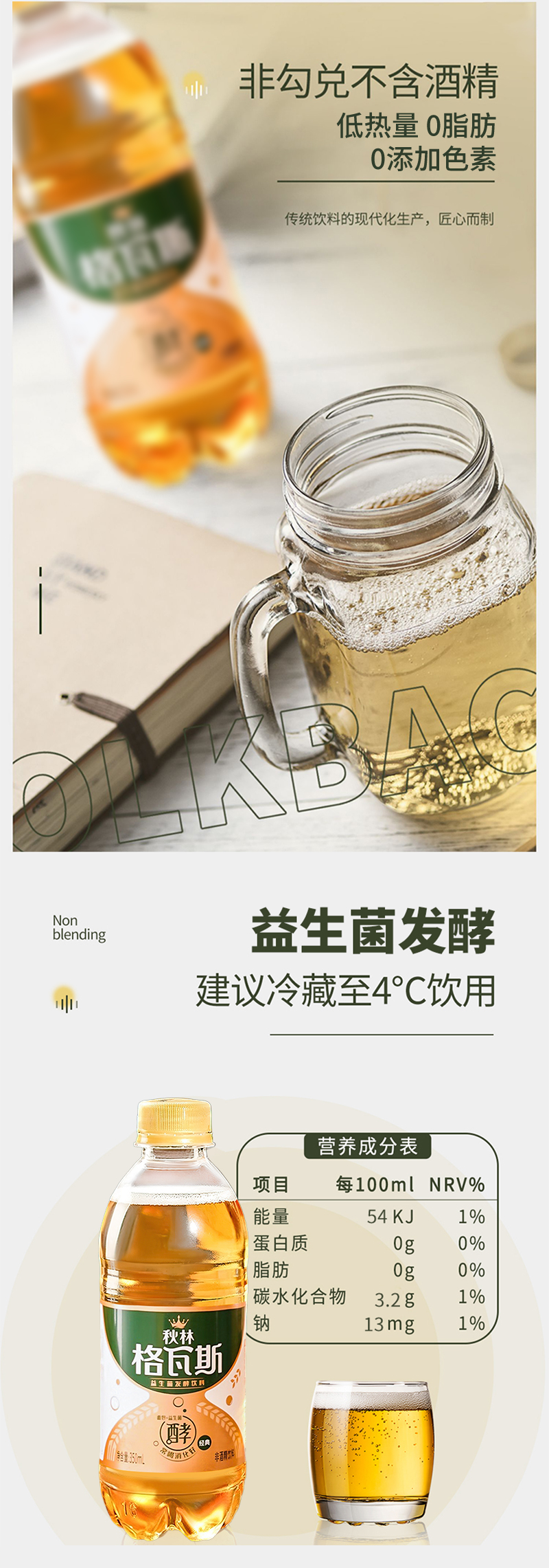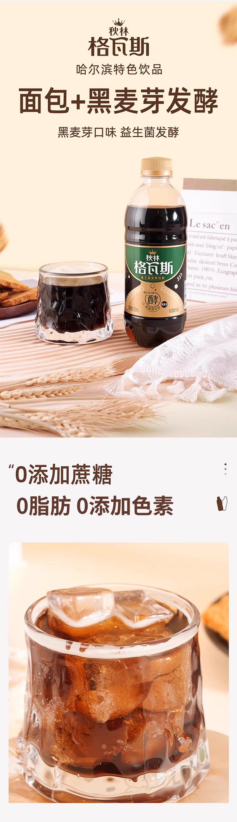 秋林原味丨黑麦芽格瓦斯饮料350ml*12【提】