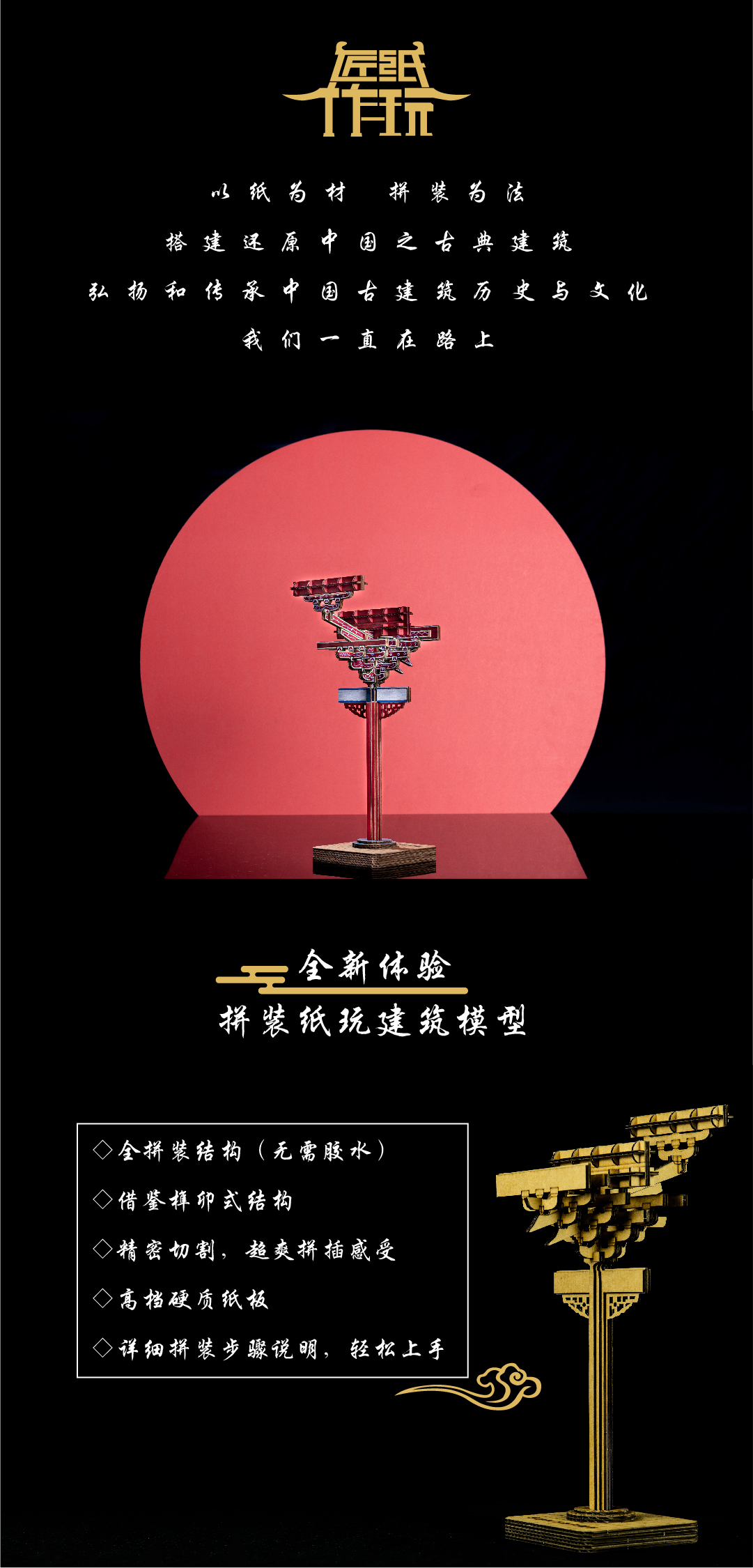 宋式斗拱国风古建筑榫卯积木拼装纸玩模型益智手工教具玩具摆件