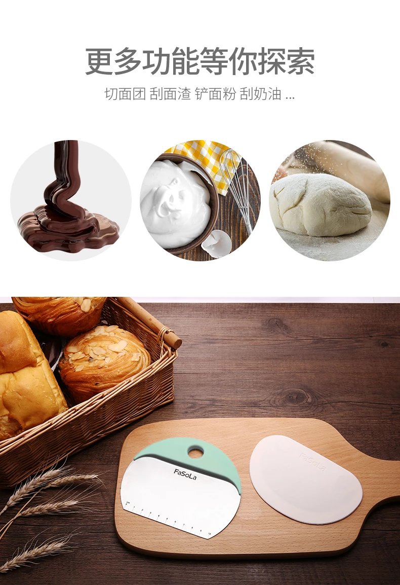 FaSoLa不锈钢切面刀硅胶刮板刮刀切面器切割面团板厨房工具