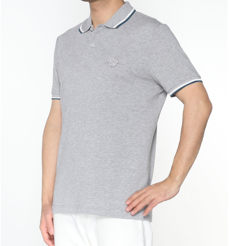 Marco Azzali 灰色小豹头刺绣POLO衫 T5259400