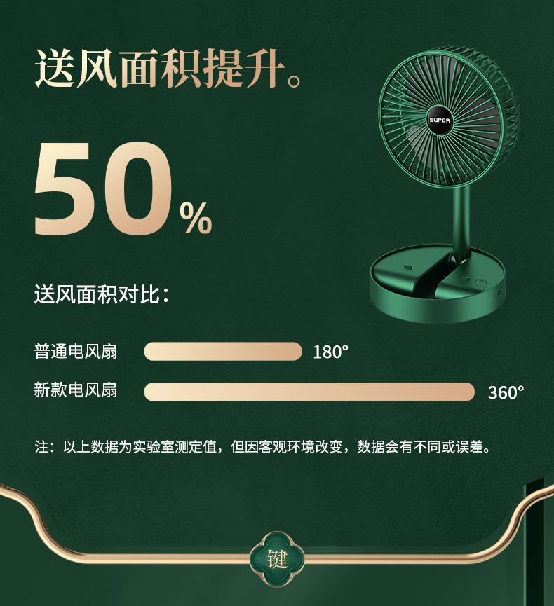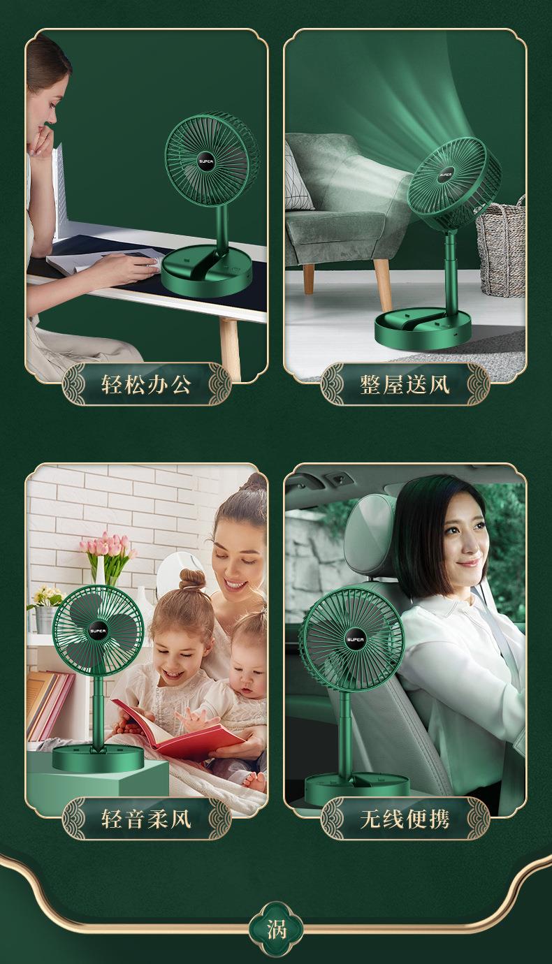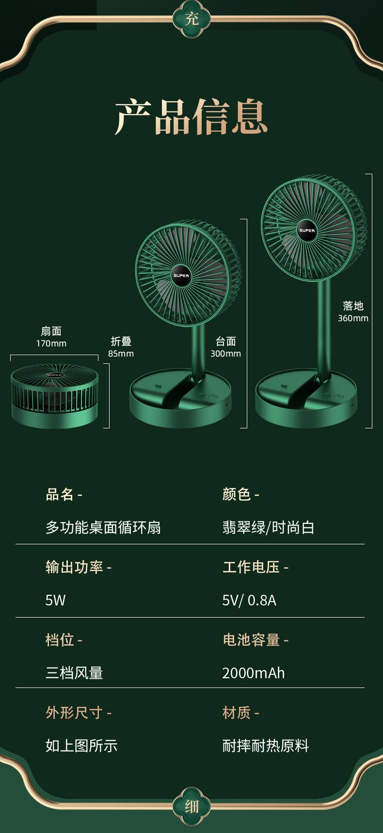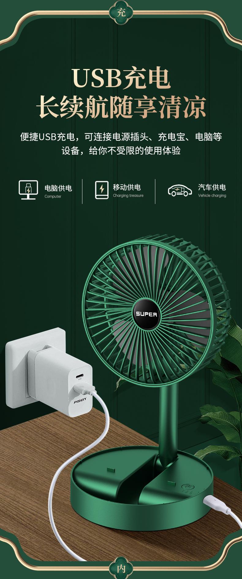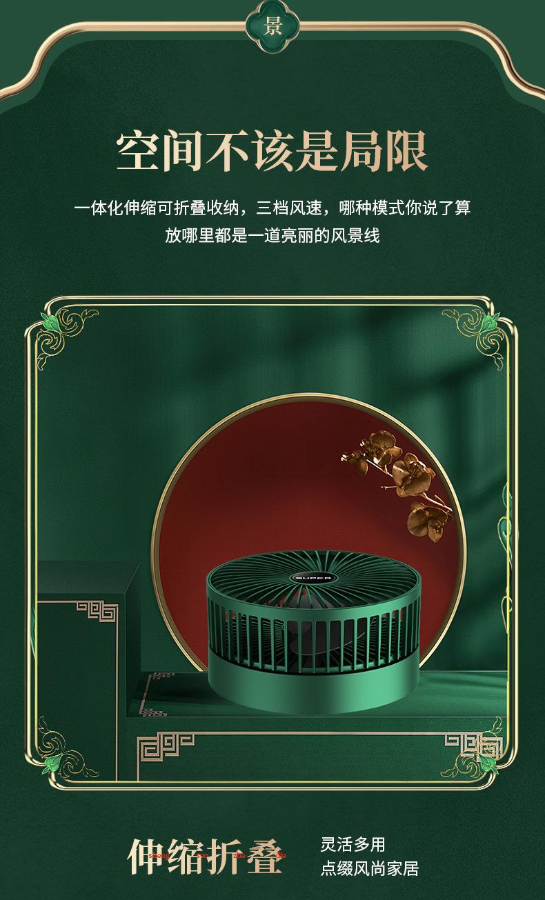 静音桌面风扇 USB充电三档调节 伸缩折叠便携 家用 大风量清凉 白色