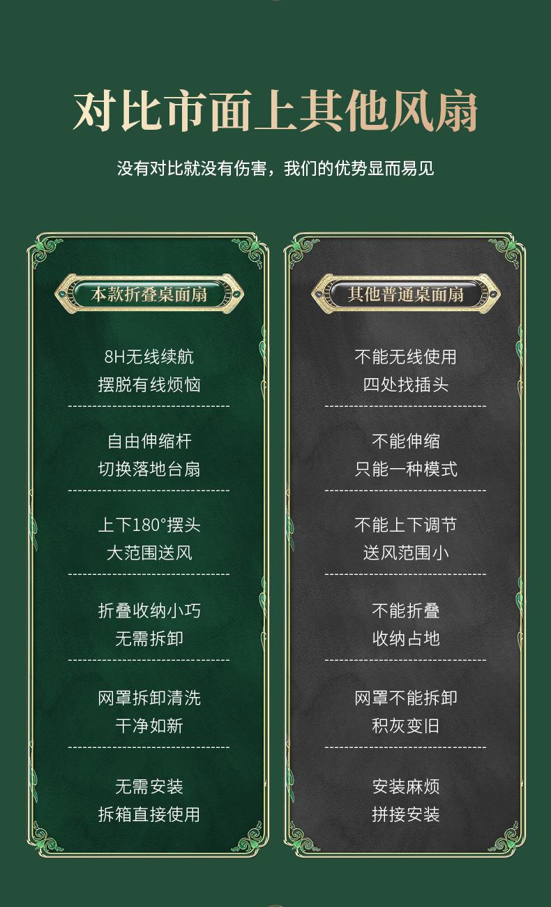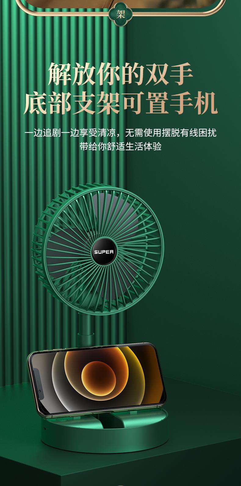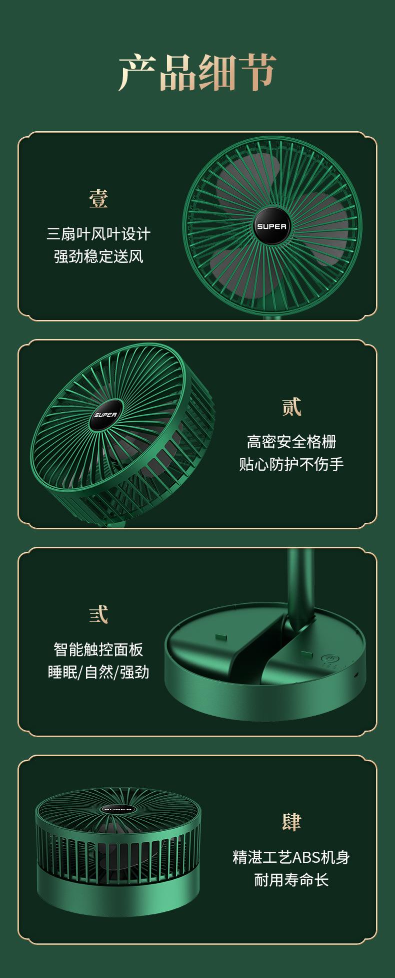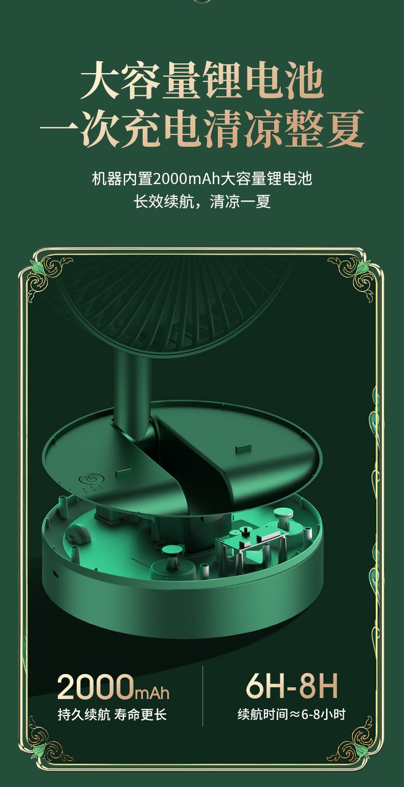 静音桌面风扇 USB充电三档调节 伸缩折叠便携 家用 大风量清凉 白色