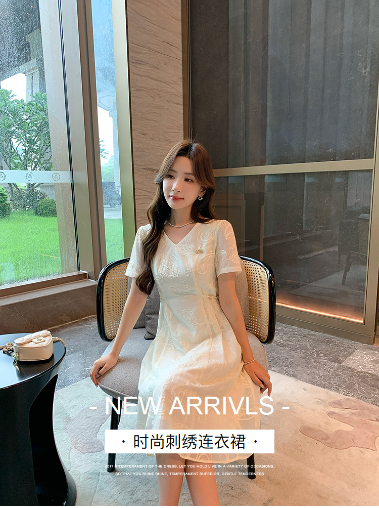 奢姿大码女装2026夏季减龄绣花连衣裙胖妹妹蝴蝶结绑带时尚裙子9952822191