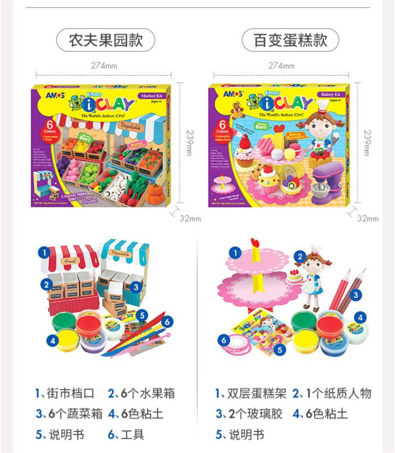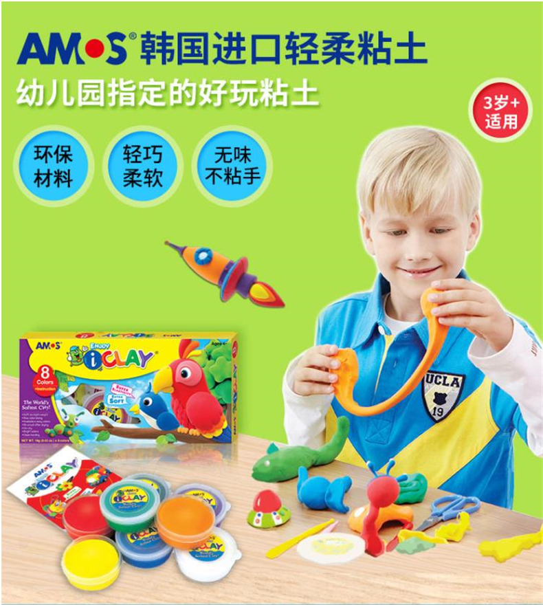 AMOS韩国超轻粘土儿童黏土安全太空橡皮泥大包装彩泥手工玩具套装