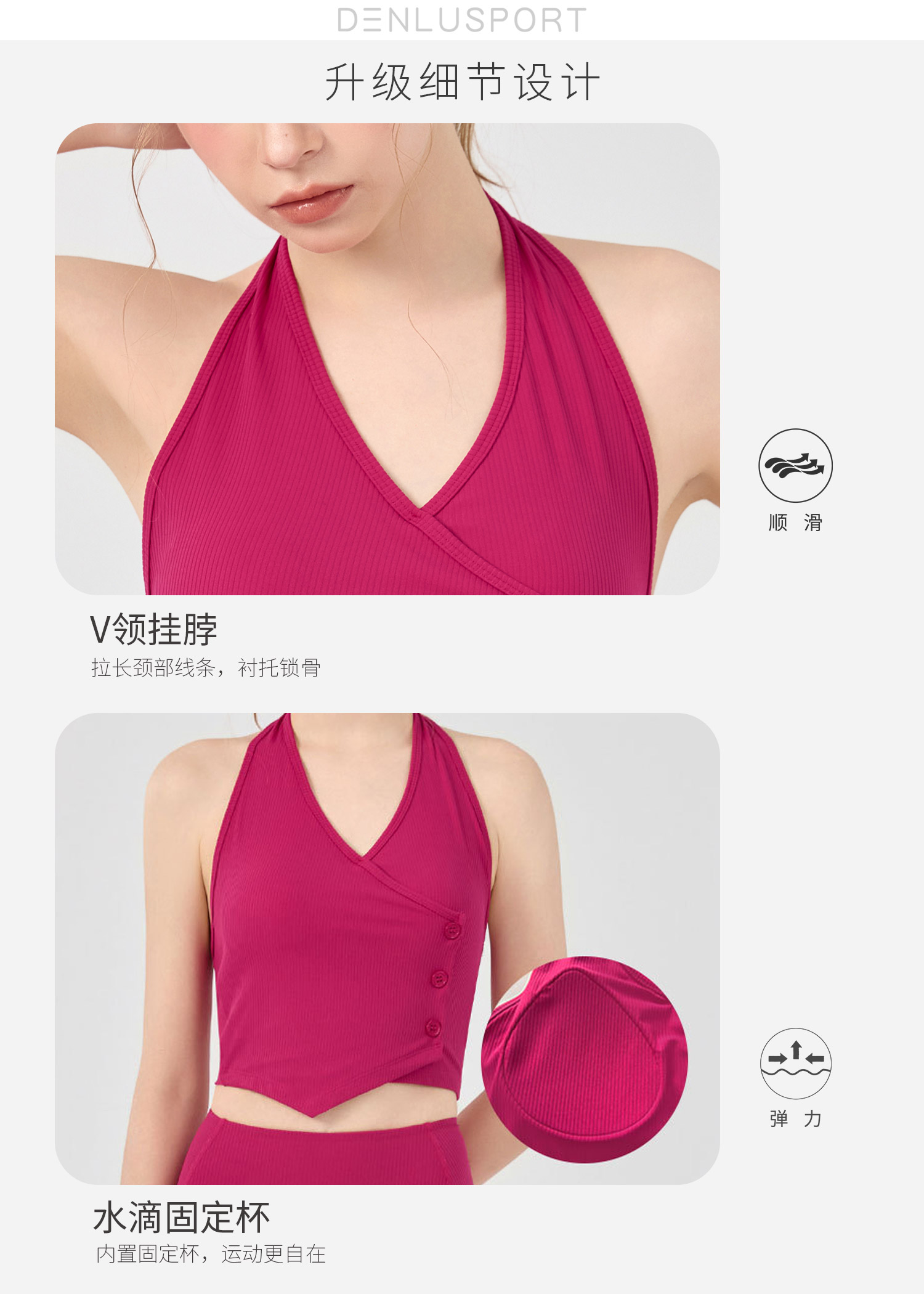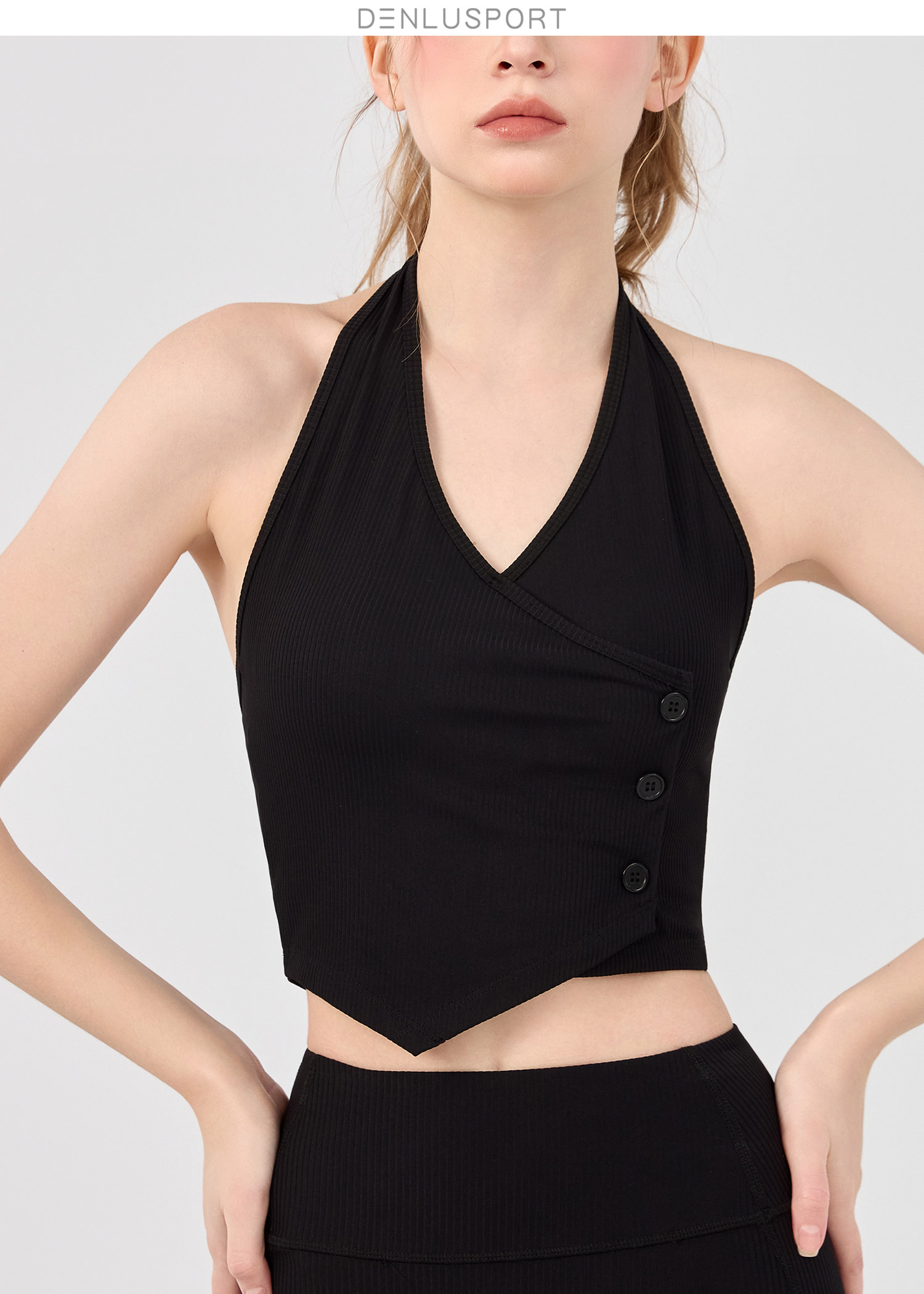 莫代尔螺纹圆领带胸垫百搭运动上衣瑜伽背心 DY66203
