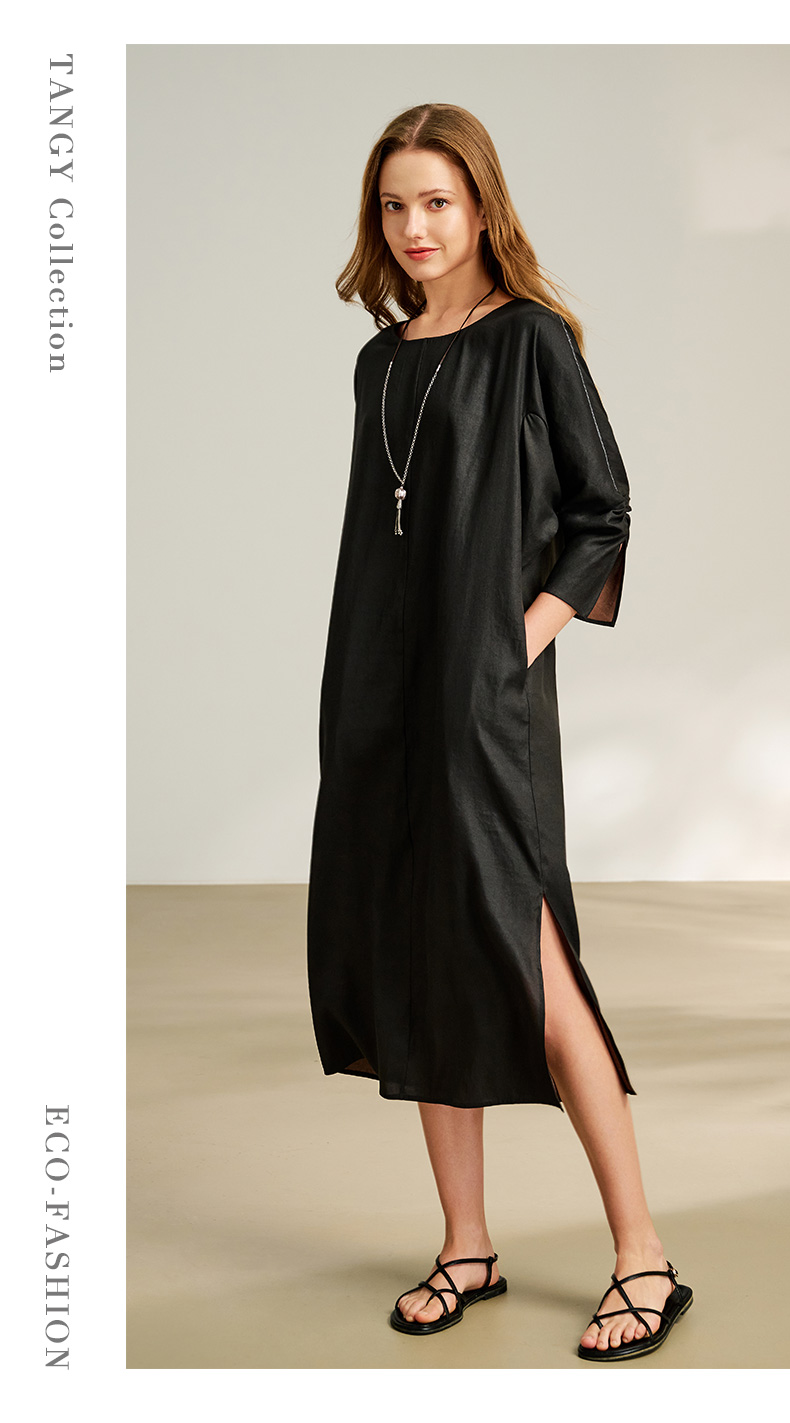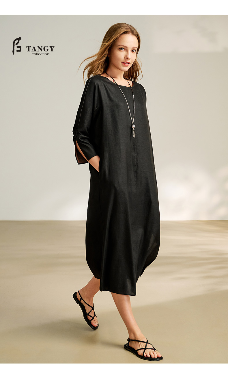 TANGY Collection/2025天意精品春季新品中国风女士莨绸连衣裙L251815