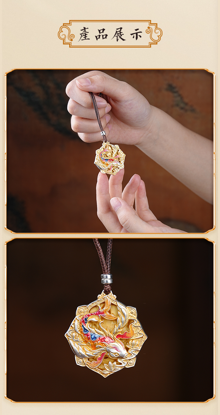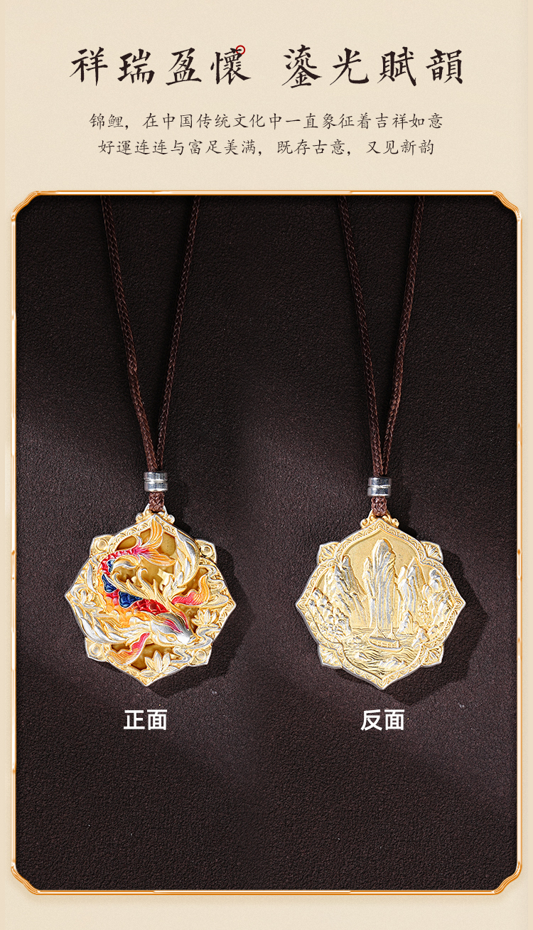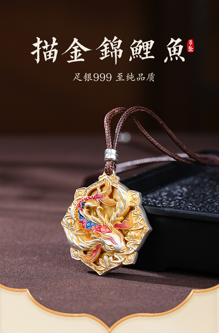 足银999锦鲤吊坠描金祛琅精致男女项链送朋友闺蜜小众礼物