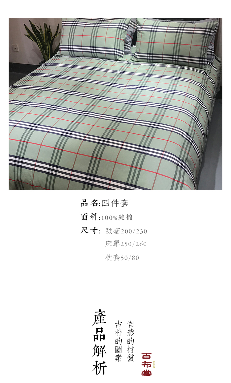 (乡村振兴商品)百布堂纯棉四件套A3版(巴布瑞绿格) 商品图0