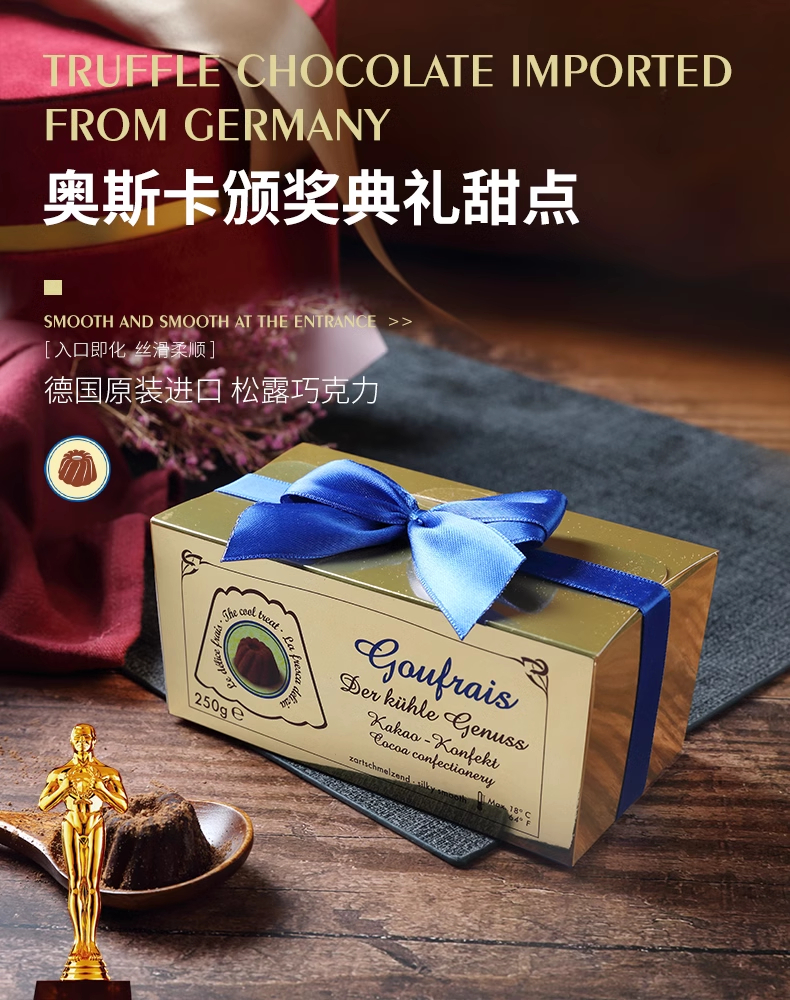 【云优选】德国Goufrais高福瑞斯奥斯卡黑松露巧克力250g/盒,效期至26年10月(非质量问题不支持7天无理由退换货,敬请谅解)