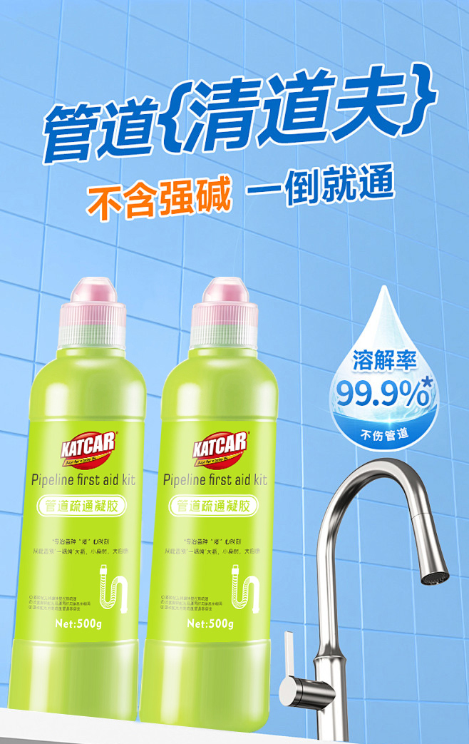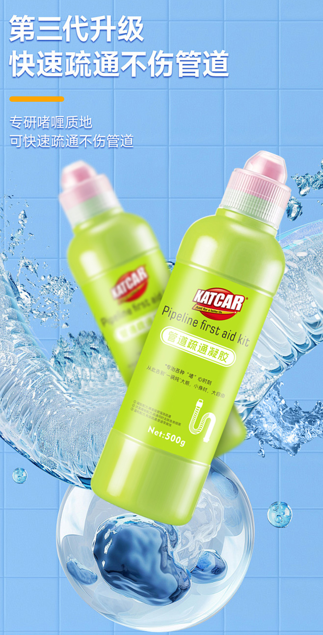【管道“清洁员”】KATCAR管道疏通 果冻凝胶管道疏通 不挑管道高效疏通 安全健康分解异味 和管道飞虫说再见 500g/瓶