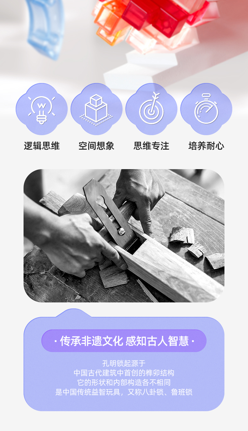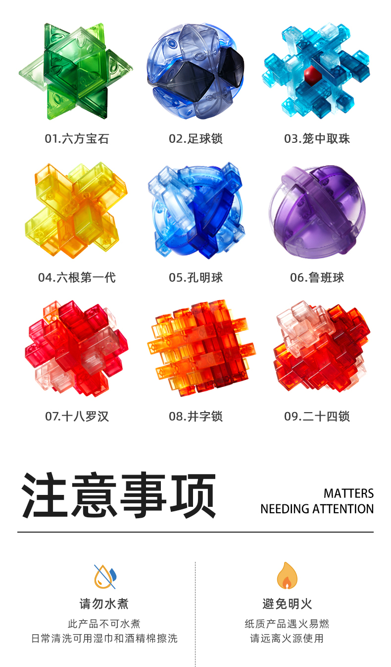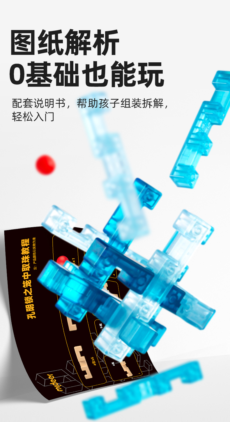 mideer弥鹿孔明锁鲁班锁全套智力解环小学生成人儿童解锁益智玩具