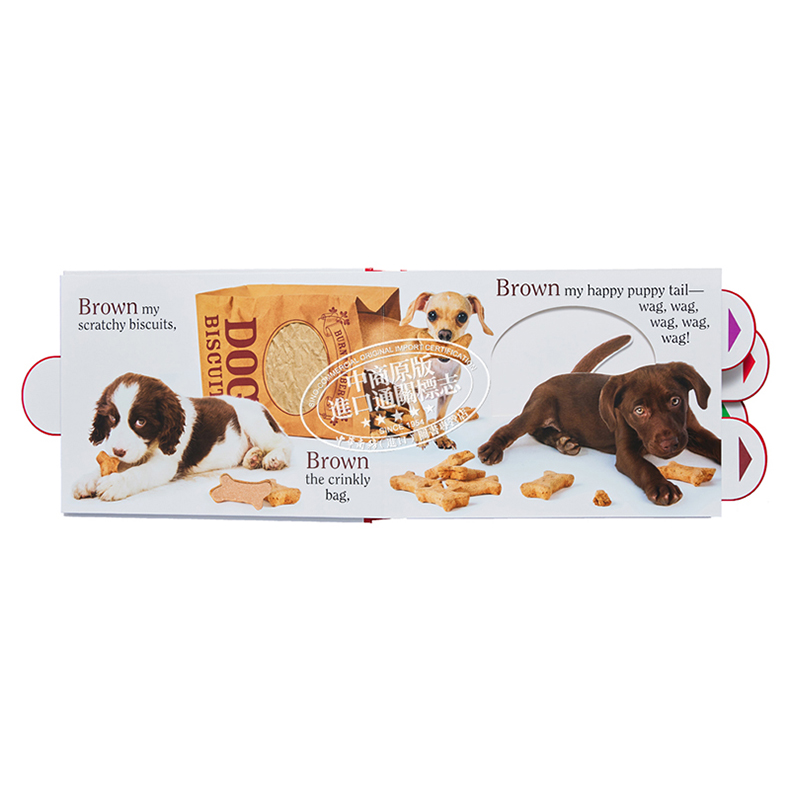 寻找大量的摇摆和呜呜声,因为一群可爱的小狗采用巧妙设计的机制、可抚摸的纹理,甚至是可以抓挠和嗅闻贴片,向幼儿介绍颜色、纹理等。