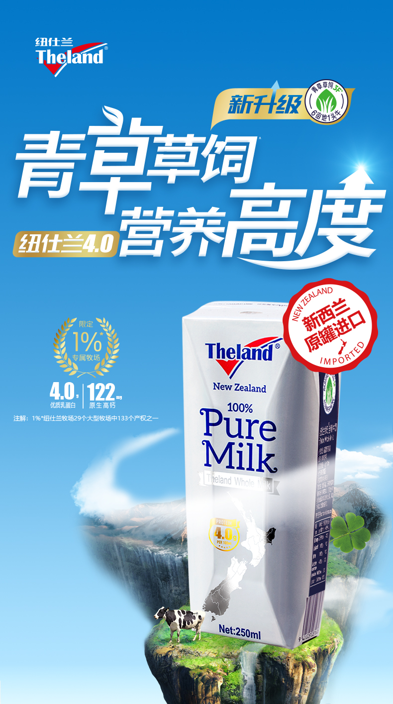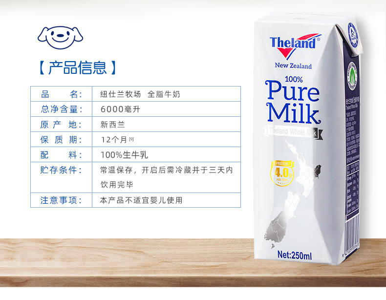 24瓶 新西兰进口 纽仕兰4.0g全脂/低脂生牛乳奶 250ml*24支家庭装 A-2577