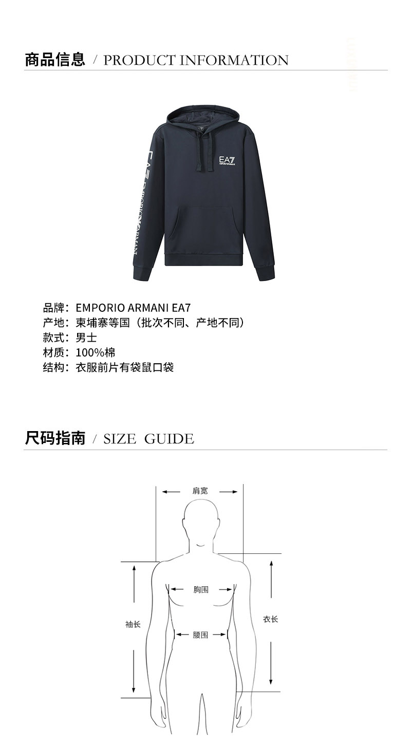 EA7/EA7 阿玛尼 男卫衣 男士棉质连帽长袖卫衣运动衫LOGO图案 8NPM18 PJ05Z