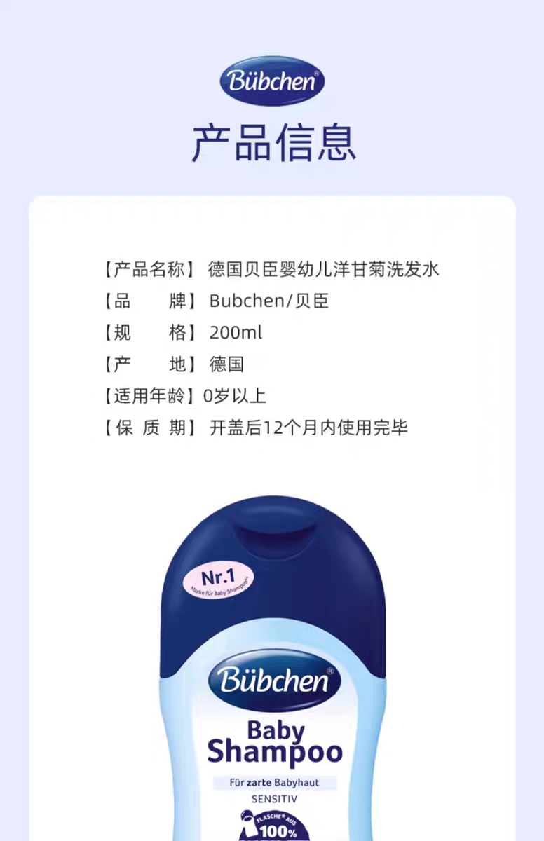 【保税】德国 贝臣(Bubchen)婴幼儿洋甘菊洗发水 200ml