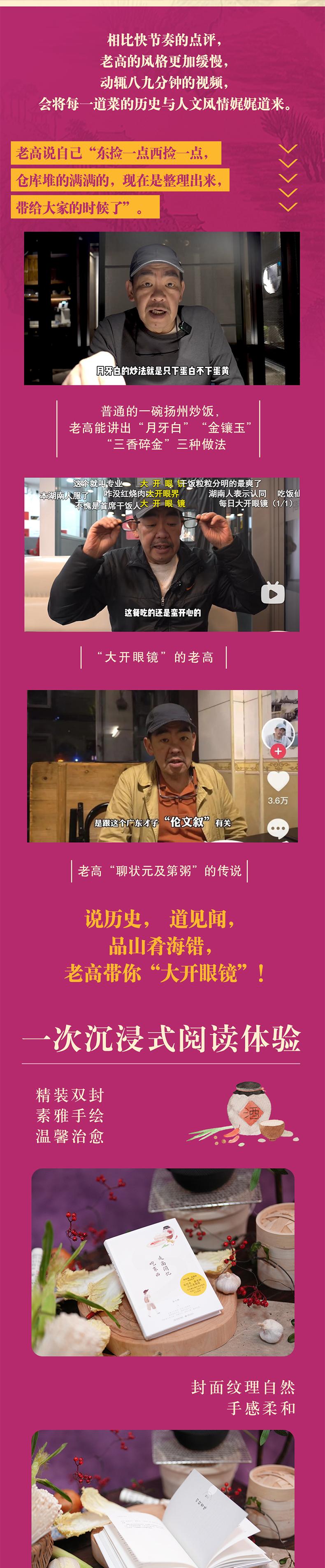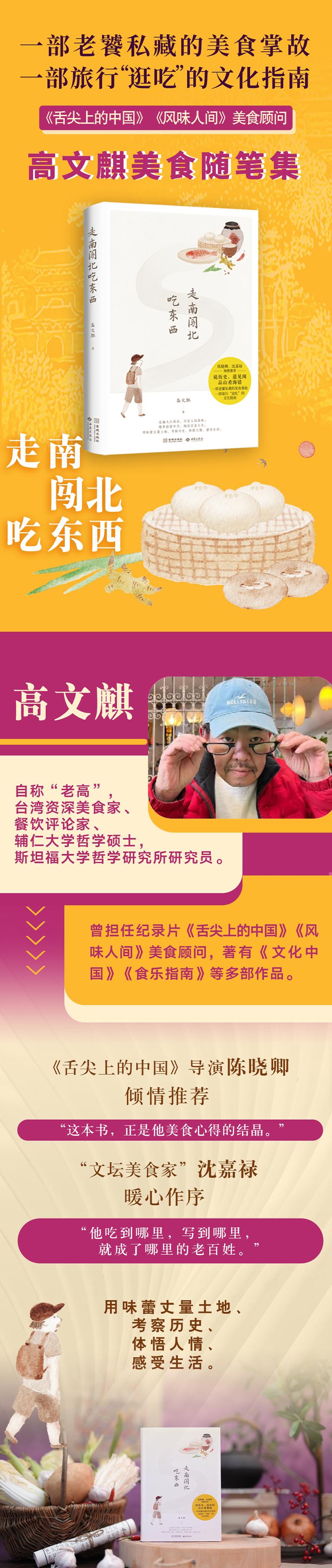 《走南闯北吃东西》是台湾资深美食家、餐饮评论家高文麒近期新创作的美食随笔集,50篇文章囊括了高文麒对于诸多美食的品鉴与探索。虽是讲美食,但更渗透着不同地域的民风、民俗及文化背景,涉及生活情趣、养生休闲、人生志趣等诸多内容,美食的起源发展、搭配考究面面俱到,叙述者的经历、气息、温情亦流贯其间。