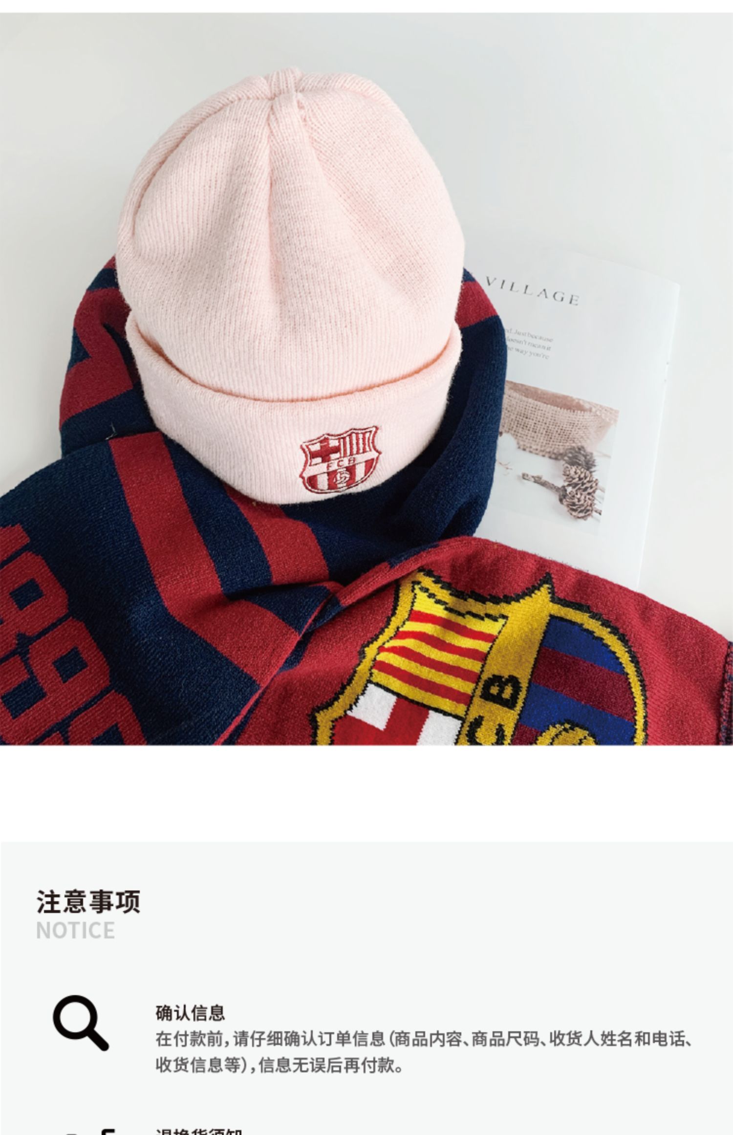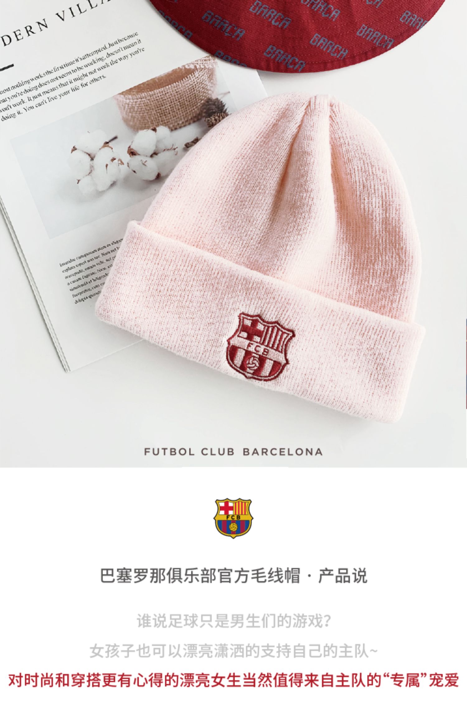 巴塞罗那俱乐部商品丨巴萨官方新款秋冬粉毛线帽足球迷针织帽