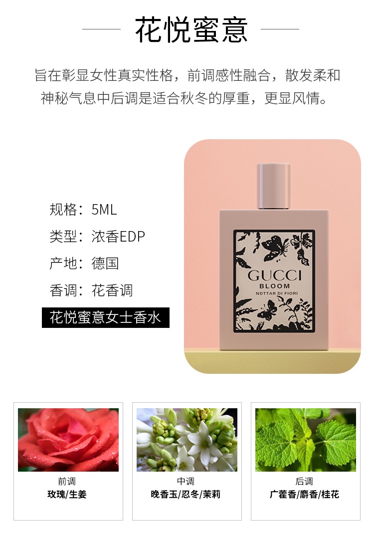 【年终限时大促】【保税仓直发·全球购】GUCCI/古驰 BLOOM花悦女士香水礼盒 Q香5ml 5件套香水礼盒