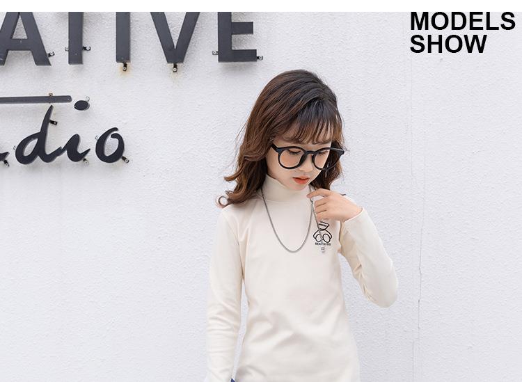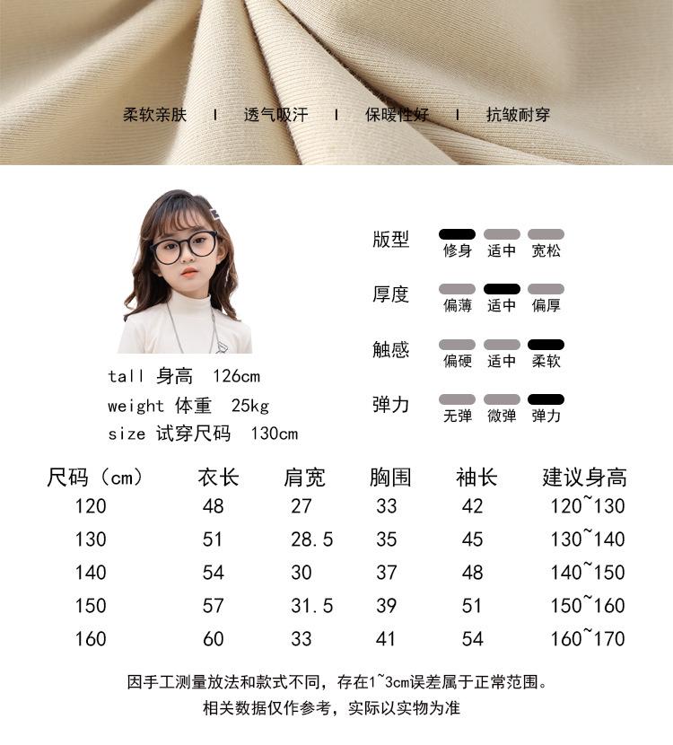 女童打底衫2023春季新款韩版女大童半高领长袖内搭上衣百搭T