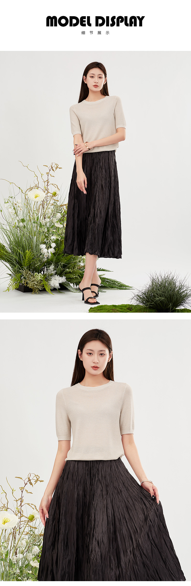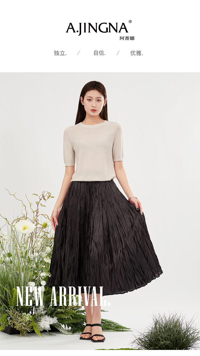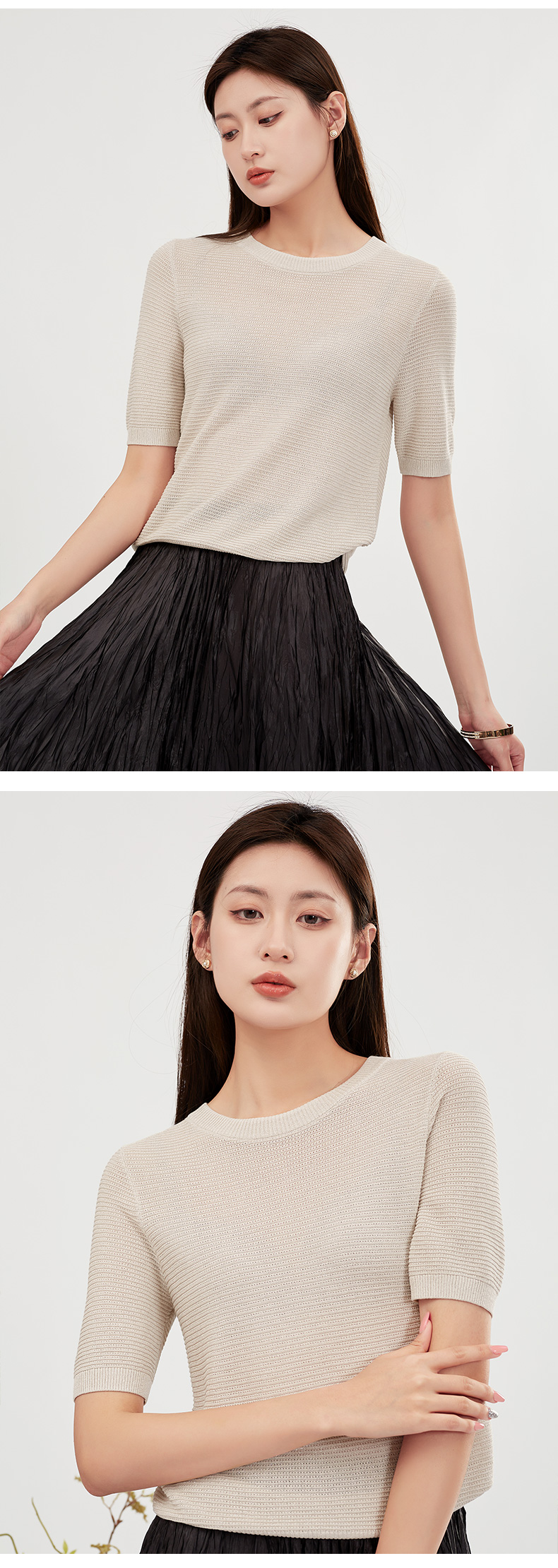 【商场同款】阿菁娜圆领轻薄透气针织衫上衣A28X301012