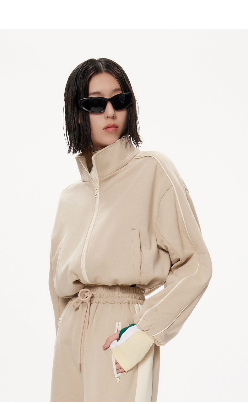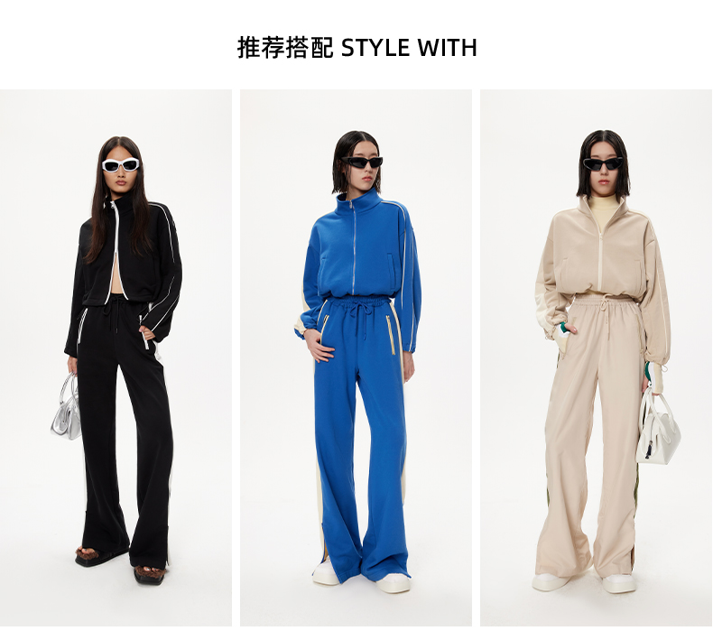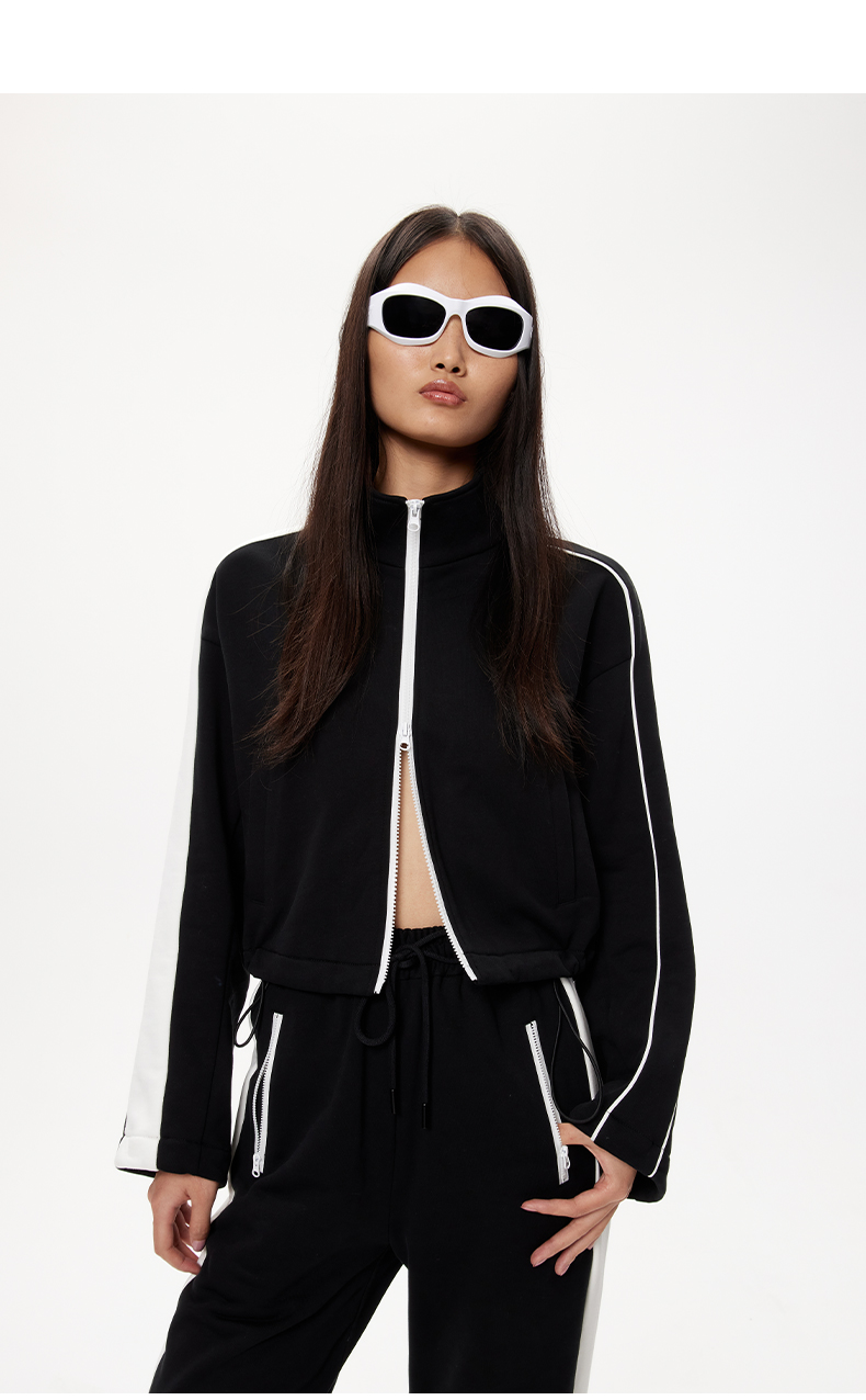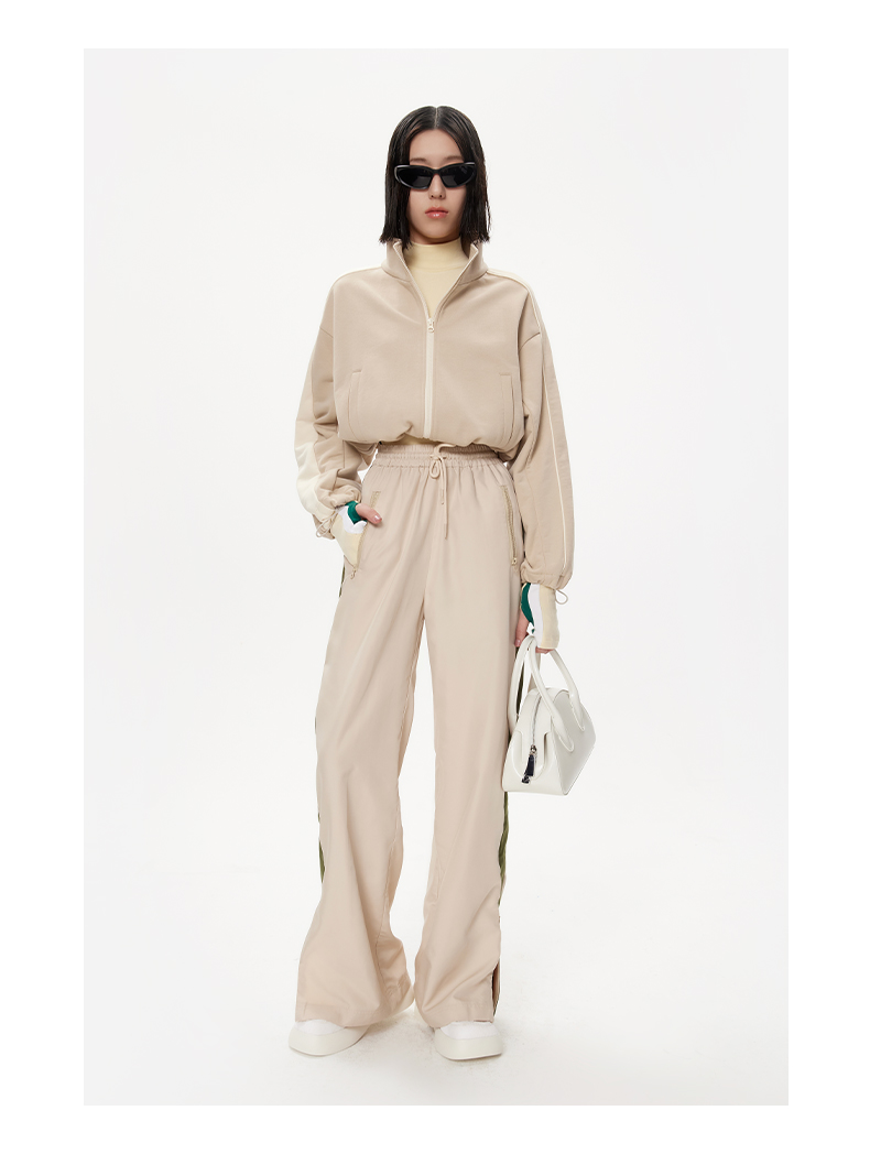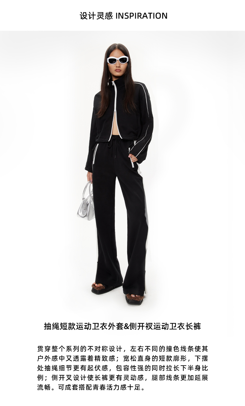 lost in echo设计师品牌抽绳短款运动卫衣外套侧开叉运动长裤套装