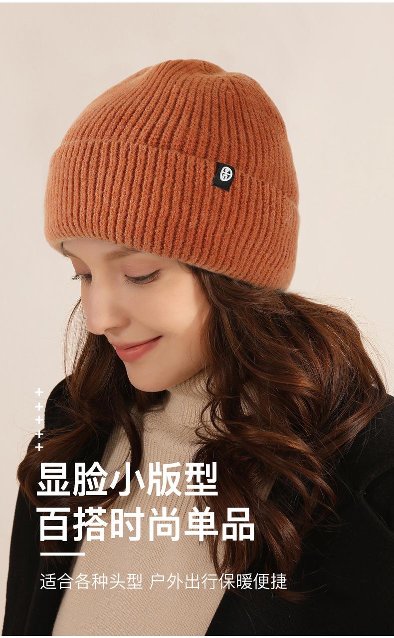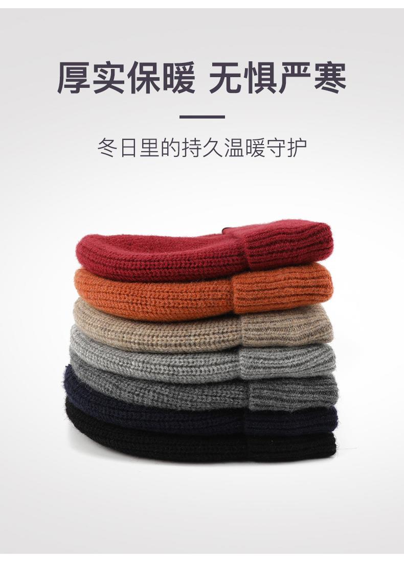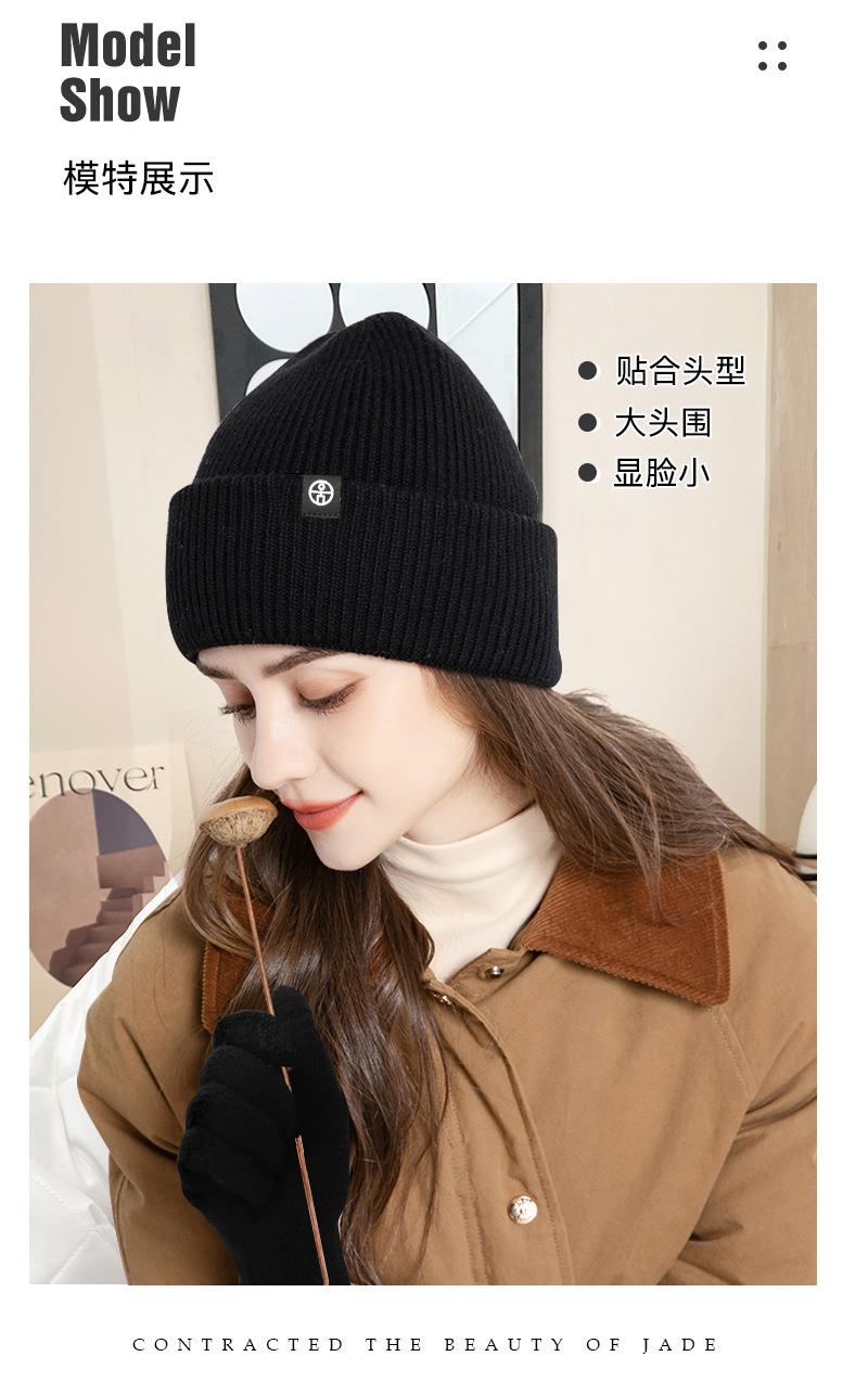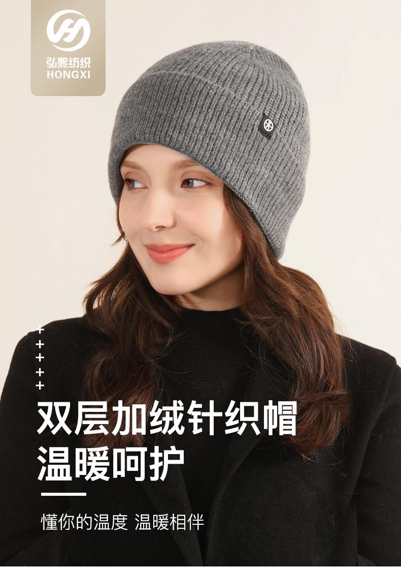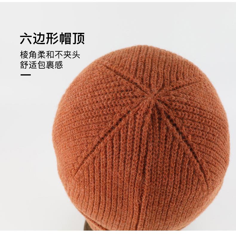 羊毛保暖毛线帽子冬季户外双层加绒针织帽大头围翻边帽