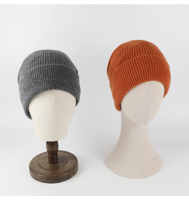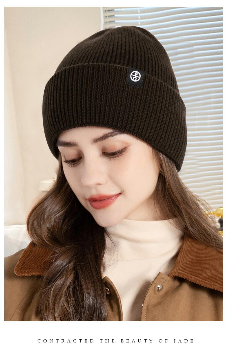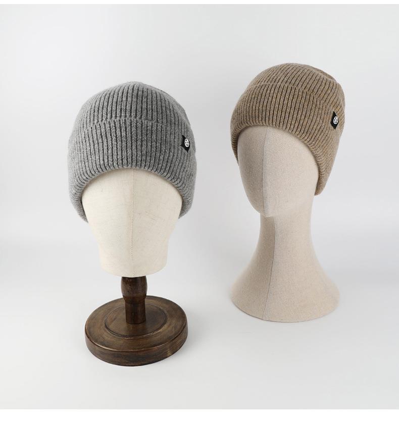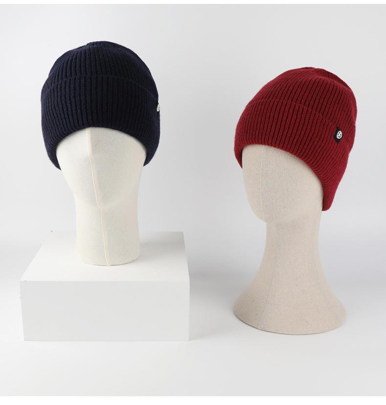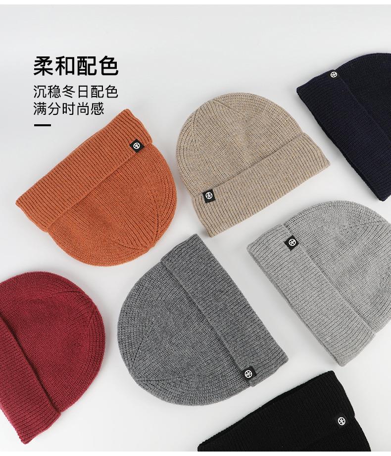 羊毛保暖毛线帽子冬季户外双层加绒针织帽大头围翻边帽
