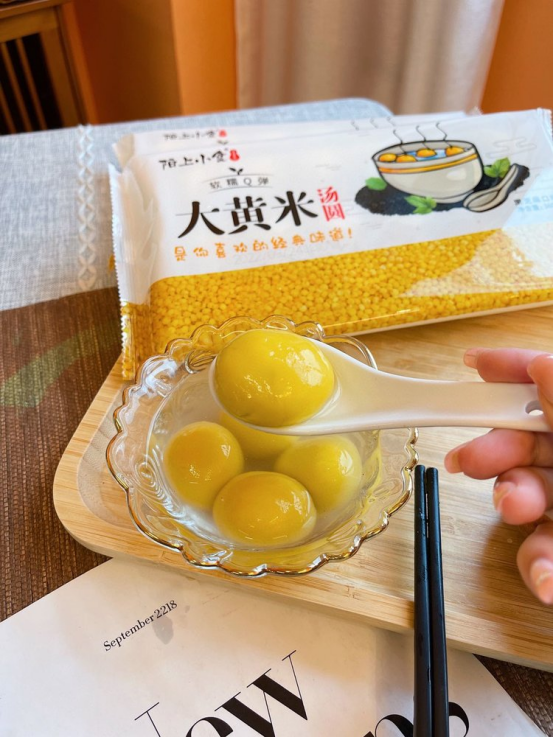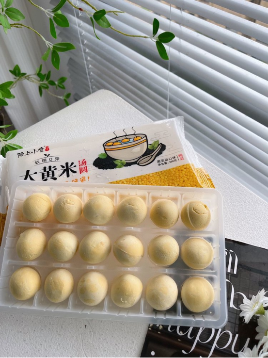 大黄米俗称“软黄米”,营养是小麦和大米的两倍 大黄米汤圆,吃了不积食,有助消化 汤圆外皮可煮可炸不破皮,入口不发散,Q弹易消化 一颗汤圆一口汤,即便终生皆是苦,大黄米依旧是你心尖上那抹香甜