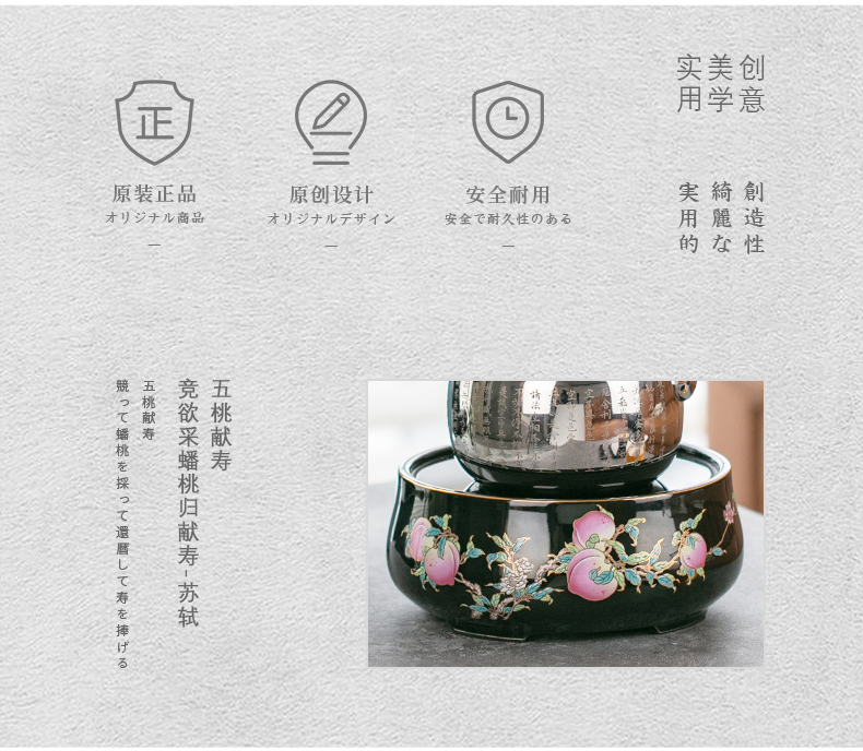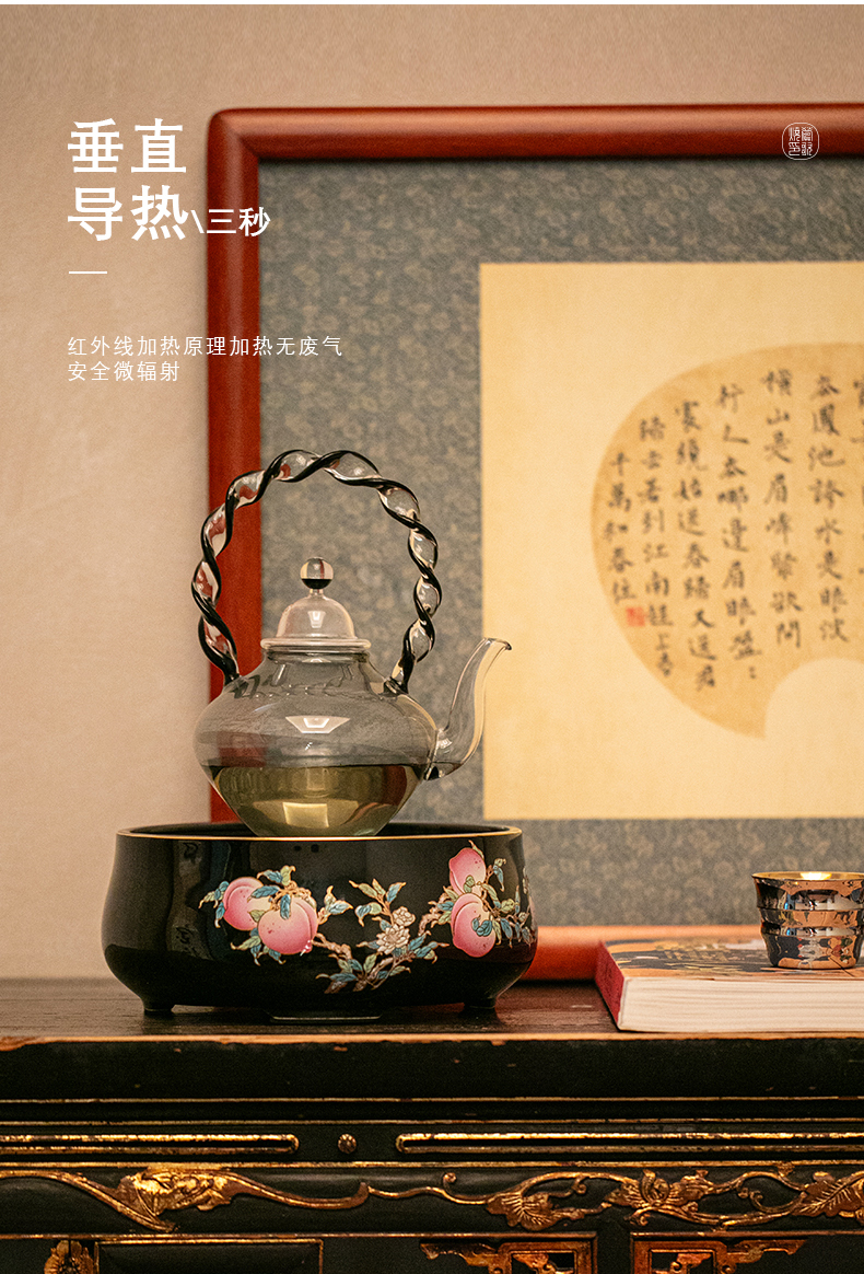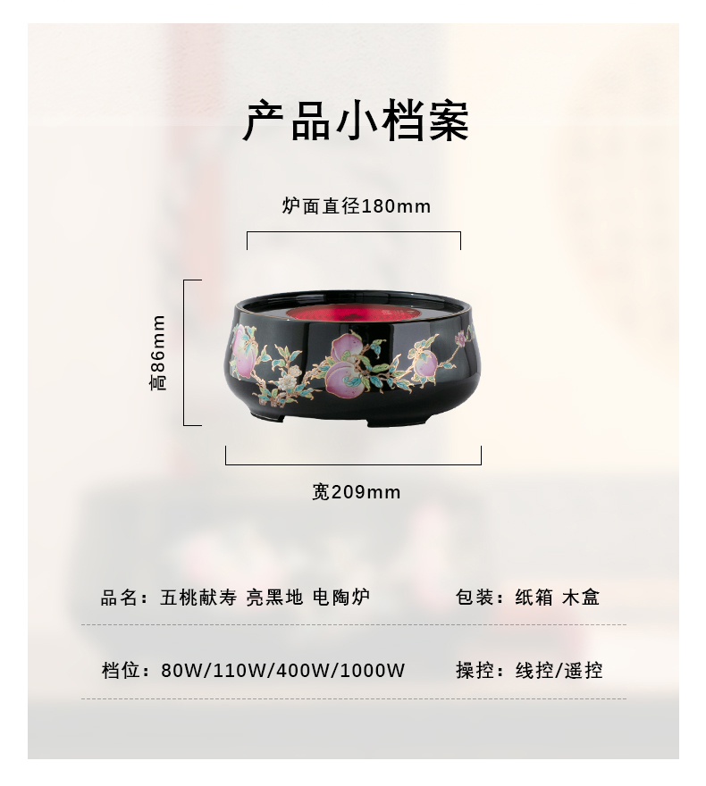【莺歌烧旗舰店】五桃献寿亮光黑地
