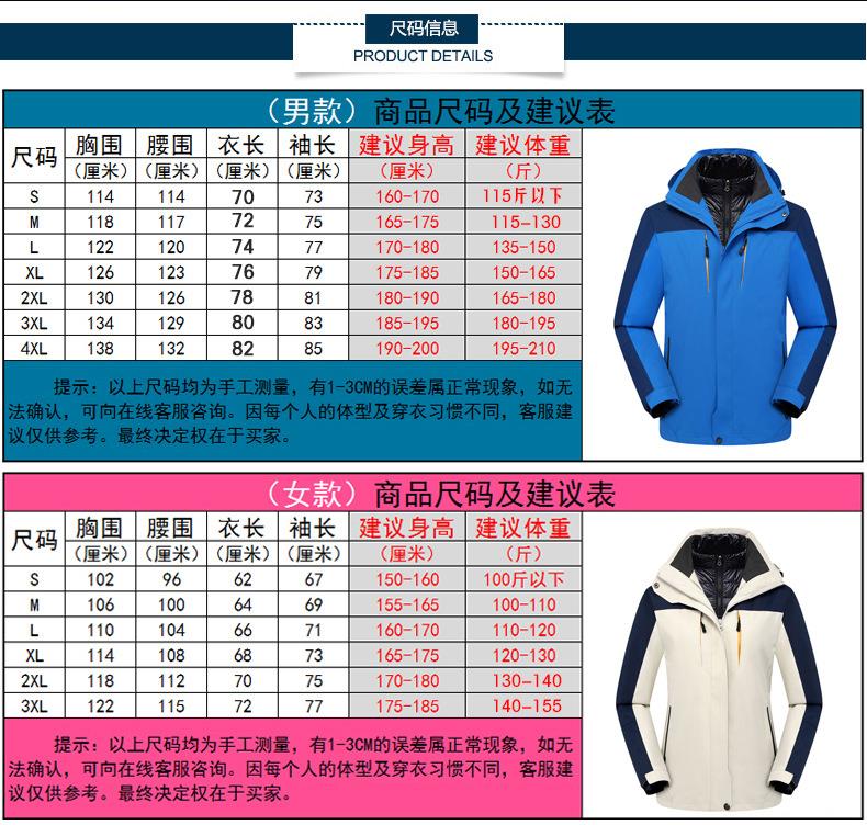 冬季户外羽绒内胆冲锋衣男女三合一两件套可拆卸防风防水登山服